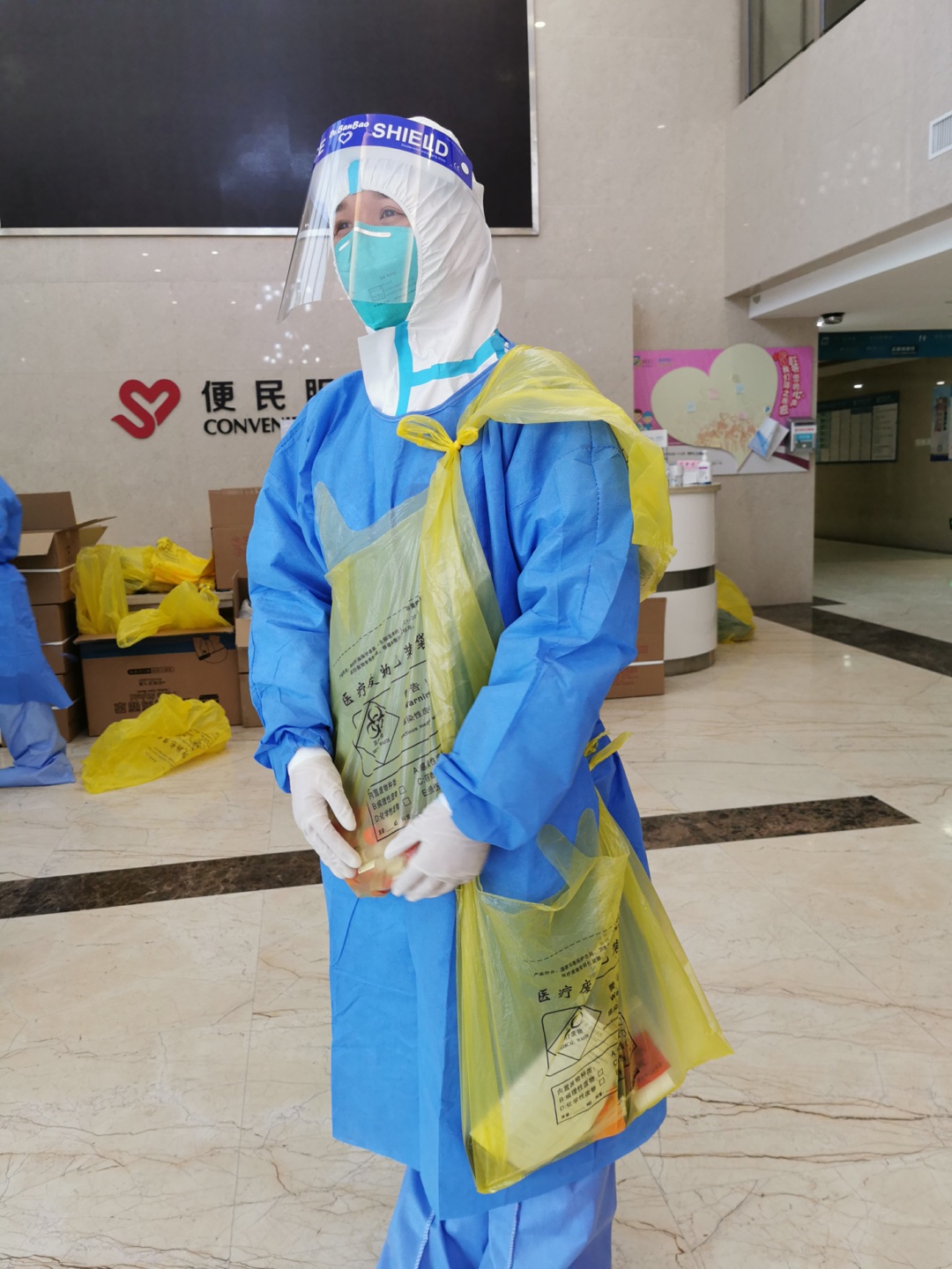 闵行区肿瘤医院为采样大白特制的爱心包包,斜挎在身上,非常方便。