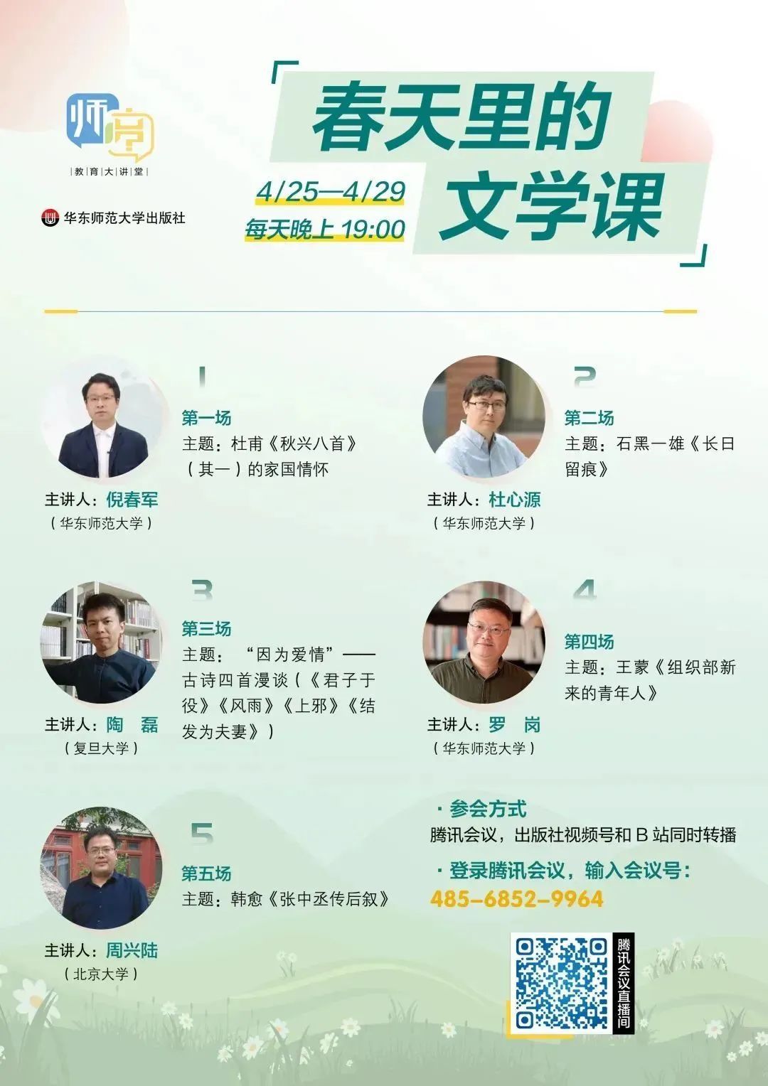 4月25日至29日,每晚19:00,让我们一起上春天里的文学课。