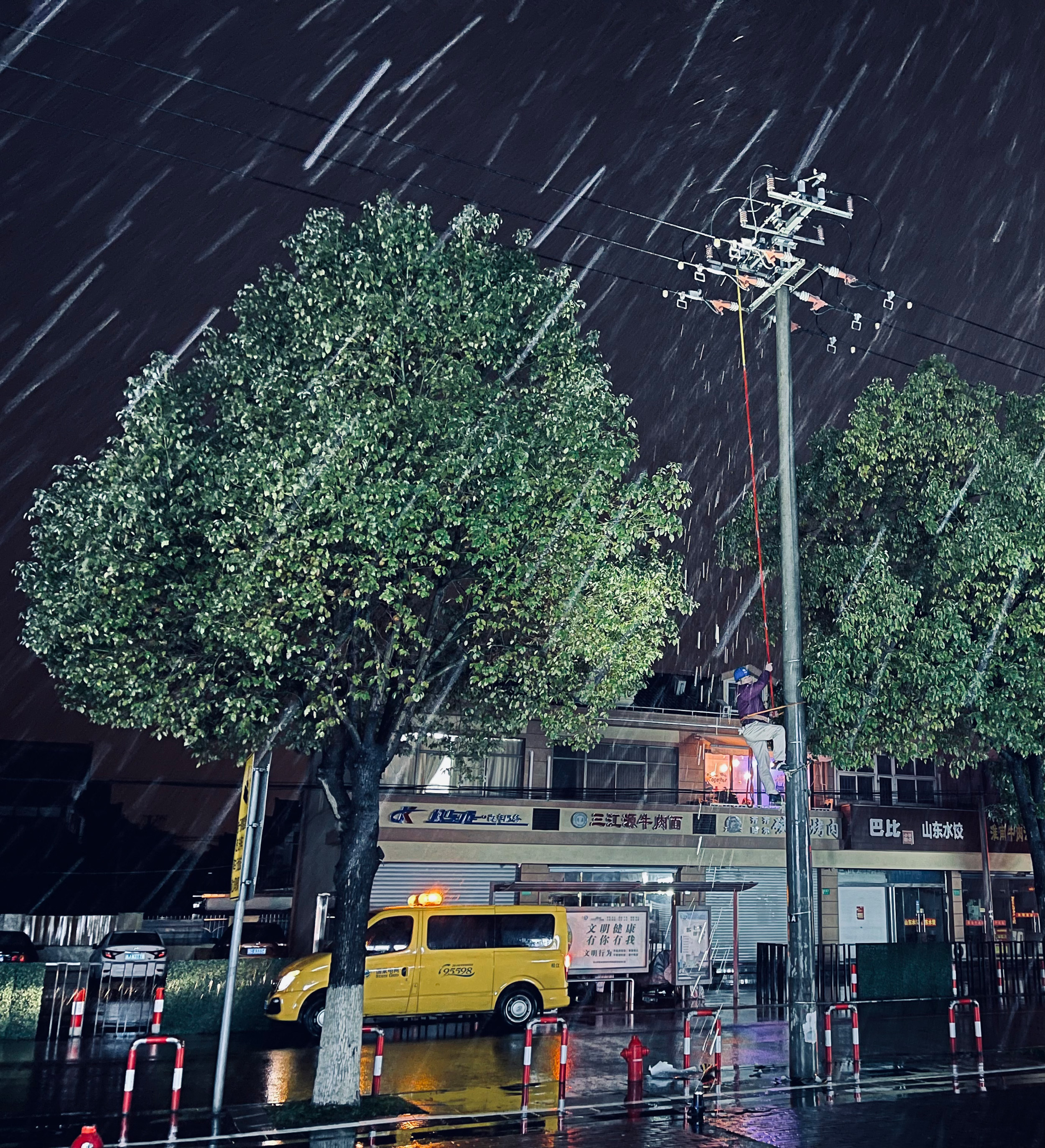 灾害天气发生后,实行全封闭值守管理的松江供电公司立即启动突发事件应急预案,从电缆、继保、变电运维、输电运检、配电抢修等值守员工中调配抢修力量,迅速成立6支抢修队伍,50余名抢修人员奔赴一线,全力开展抢修。
