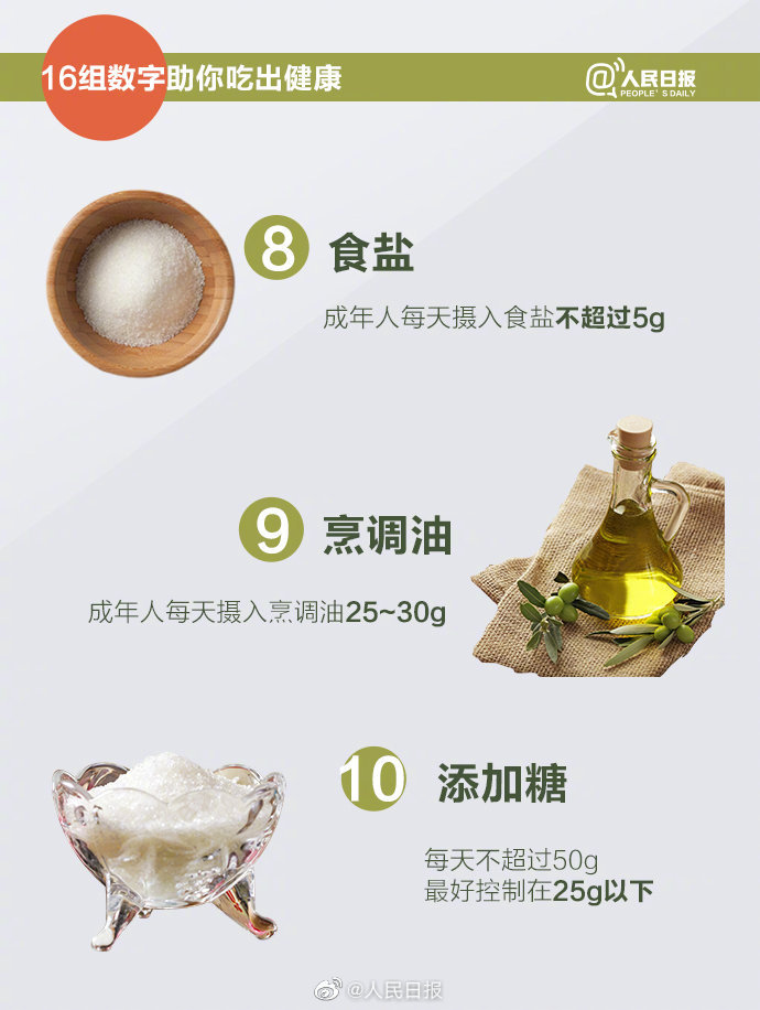 26日《中国居民膳食指南(2022)》发布:①建议平均每天摄入12种以上食物,每周25种以上;②成年人每天摄入食盐不超5g,烹调油25~30g;③每日添加糖摄入最好25g以下;④成年人一天饮用酒精量不超15g;⑤少喝含糖饮料...这14类食物,你吃对了吗↓↓为健康,学习收藏!
