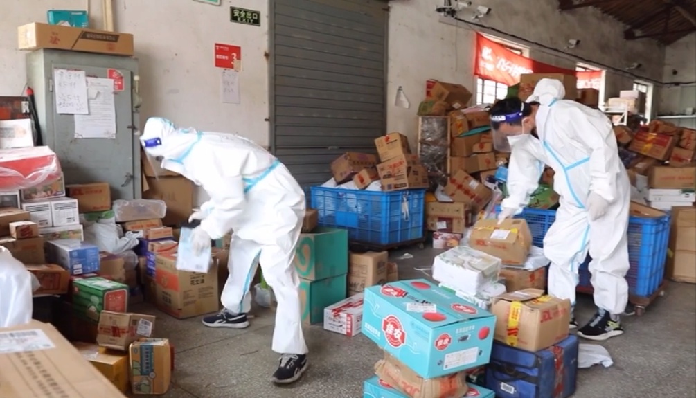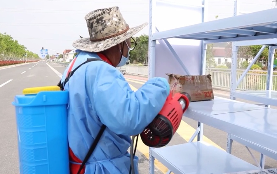 疫情期间为了方便小哥派单,也为了及时对快递进行消杀,很多村居都在道口上设置了快递放置架。陆国祥说这些天的派件总体都比较顺利,只是在外闭环工作,偶尔还是会想家。
