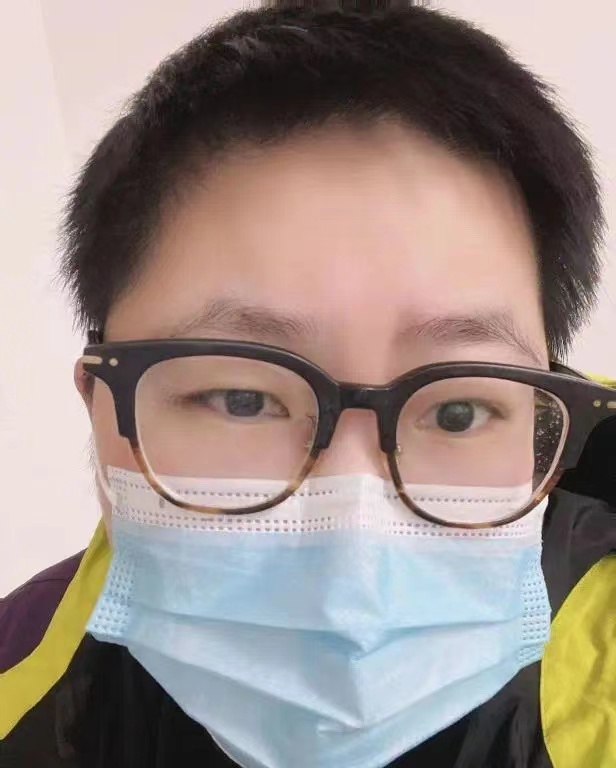 “是的,当时担心头发露出来会有风险,所以入驻方舱前一天,我自己在家里用推子把长发推掉了。”