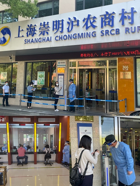 5月18日,在社会面基本清零的崇明区辖内,上海崇明沪农商村镇银行恢复对外营业,全力以“复”,齐心守“沪”,心系客户,践行责任,为金融服务保驾护航。