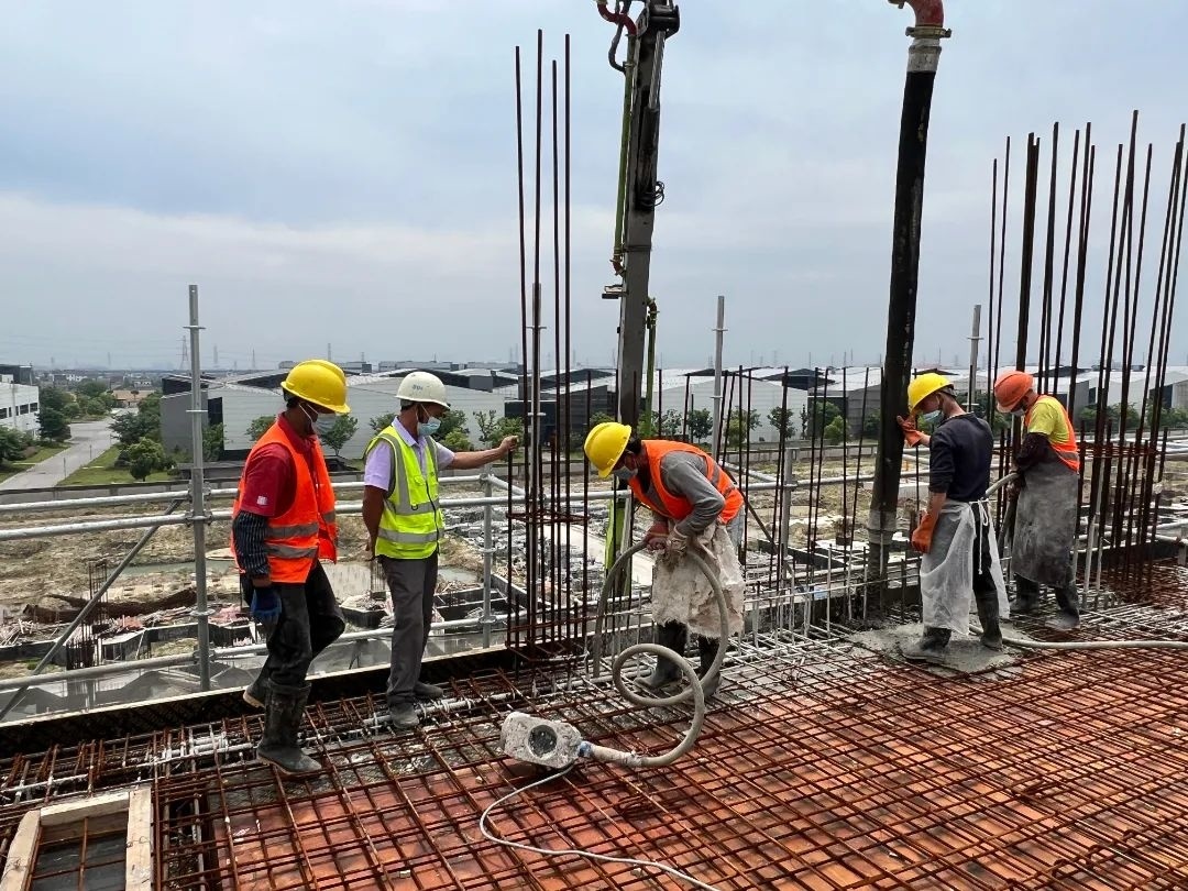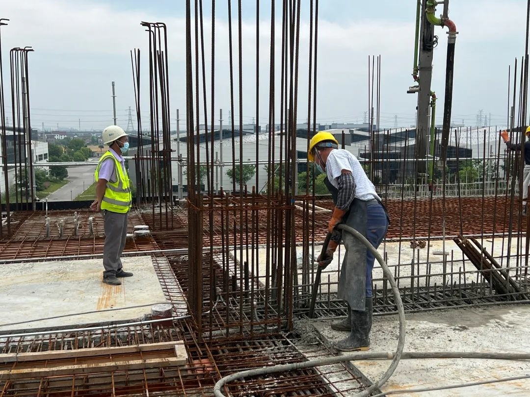 施工现场,设备的轰鸣声不断,工人们佩戴着n95口罩正在对主体结构浇筑混凝土。据阿里巴巴上海枫泾镇飞天园区项目经理朱伟介绍,目前项目a、b楼及运维楼处于装修及机电安装阶段,c、d楼处于主体结构施工阶段,e、f 楼处于基础施工阶段。“能复工,工人们都非常开心。我们在施工过程中,严格各施工作业区、各楼层、各流水段、各工序作业人员分散作业,确保作业面不出现人员大量聚集。”