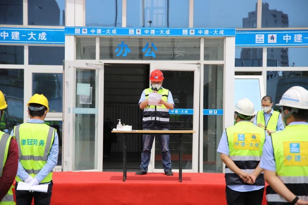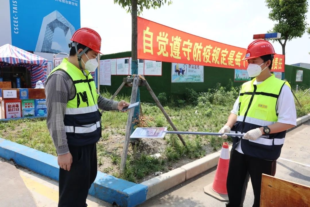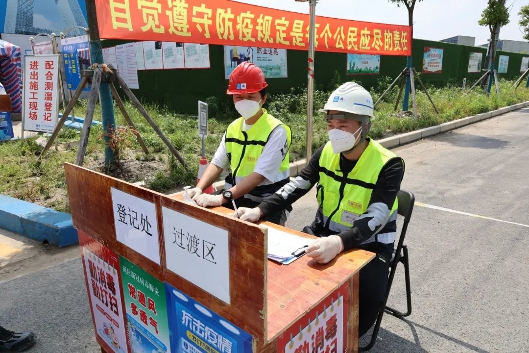 在复工前期,该项目就已形成了建筑工地疫情防控复工复产工作方案,及配套的复工复产自查表和流程图。为做好疫情防控工作,该建筑工地还成立了专门的疫情防控工作小组,下设疫情防控组、物资保障组、信息统计组、疫情应急组、宣传教育组,进行“分类、分区、分级、分时、分散”和“全封闭”管理,并同步在工地范围内设置生活区,只开一个出入口。