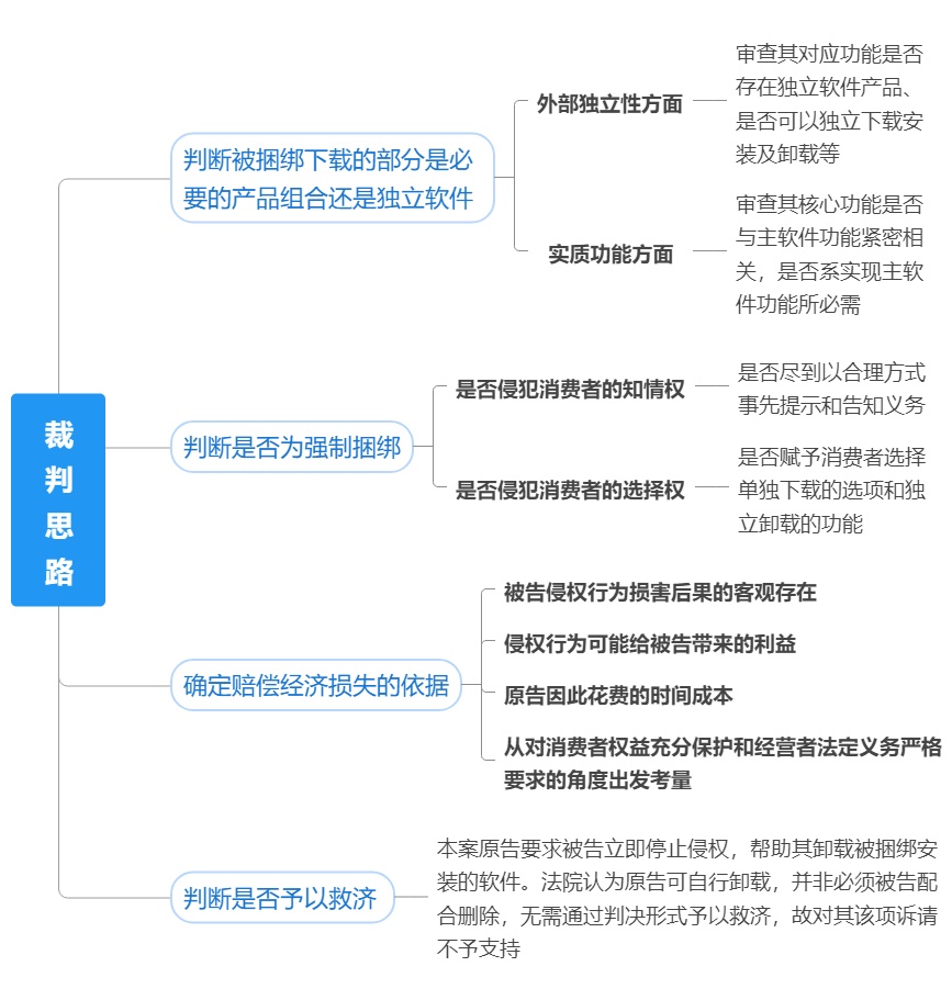 本案的裁判在软件捆绑安装行为及其违法性的界定、侵权责任的认定方面作出深入探讨,提供了可资借鉴的经验。