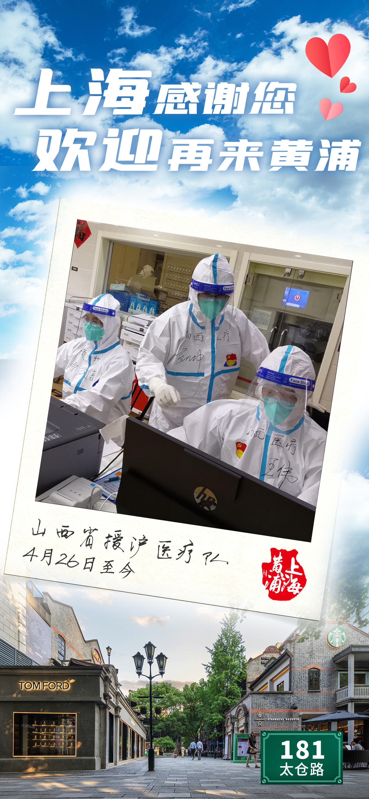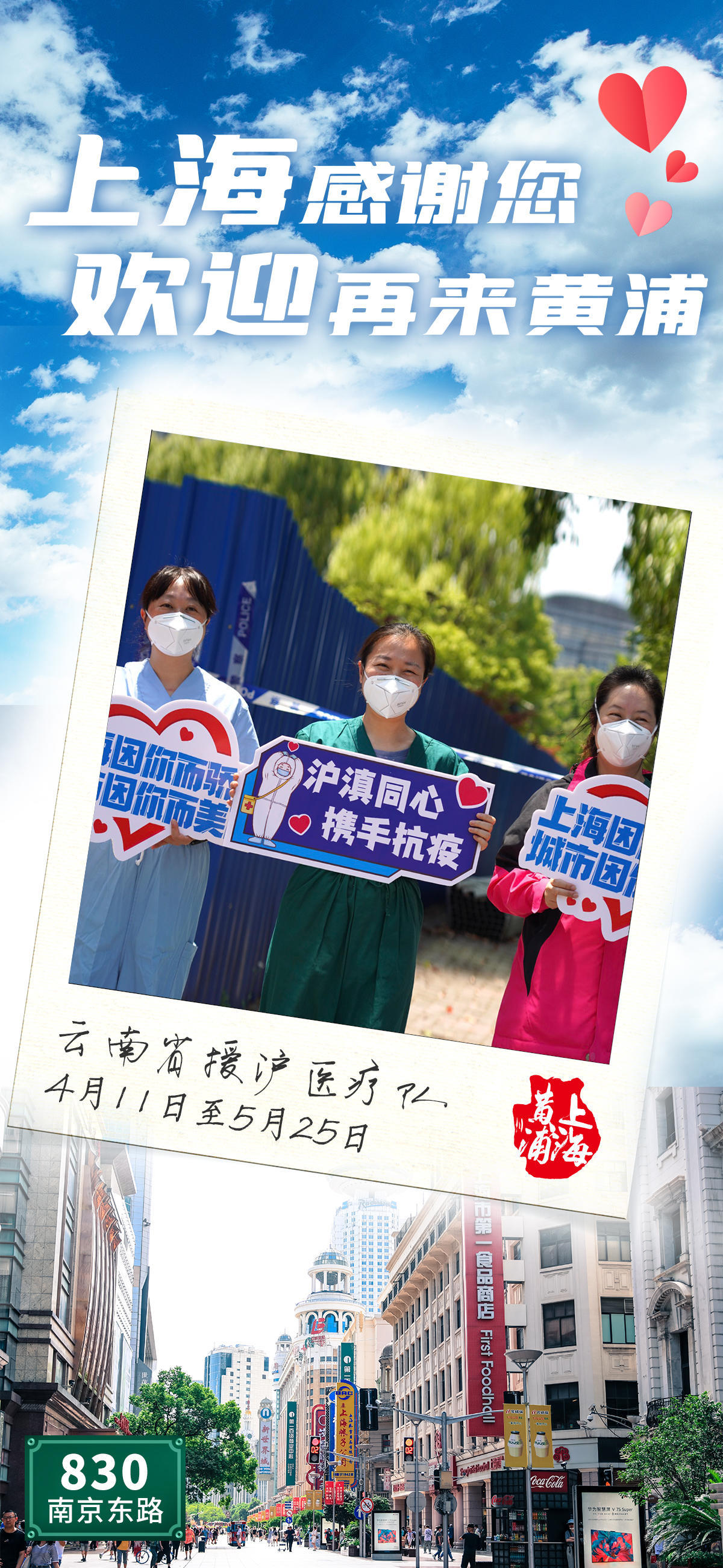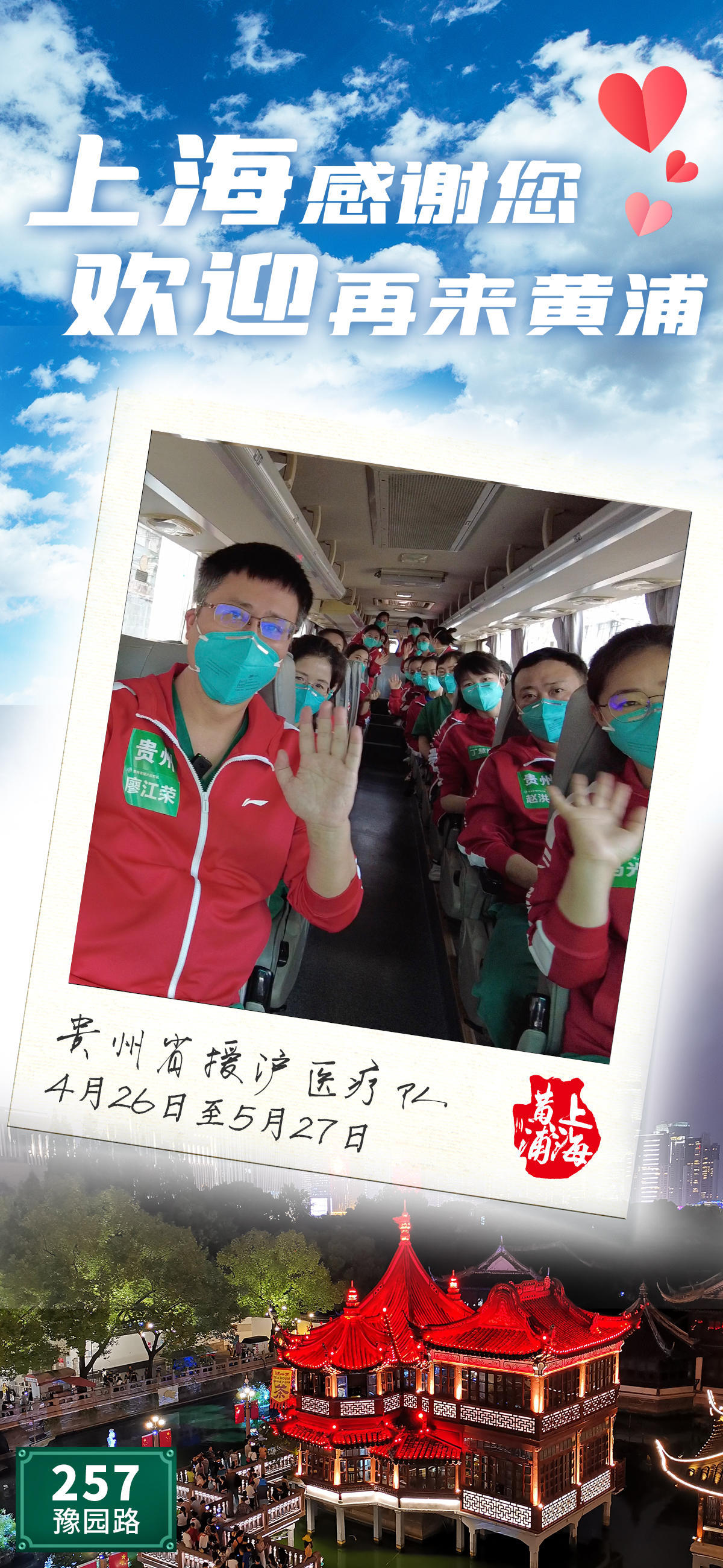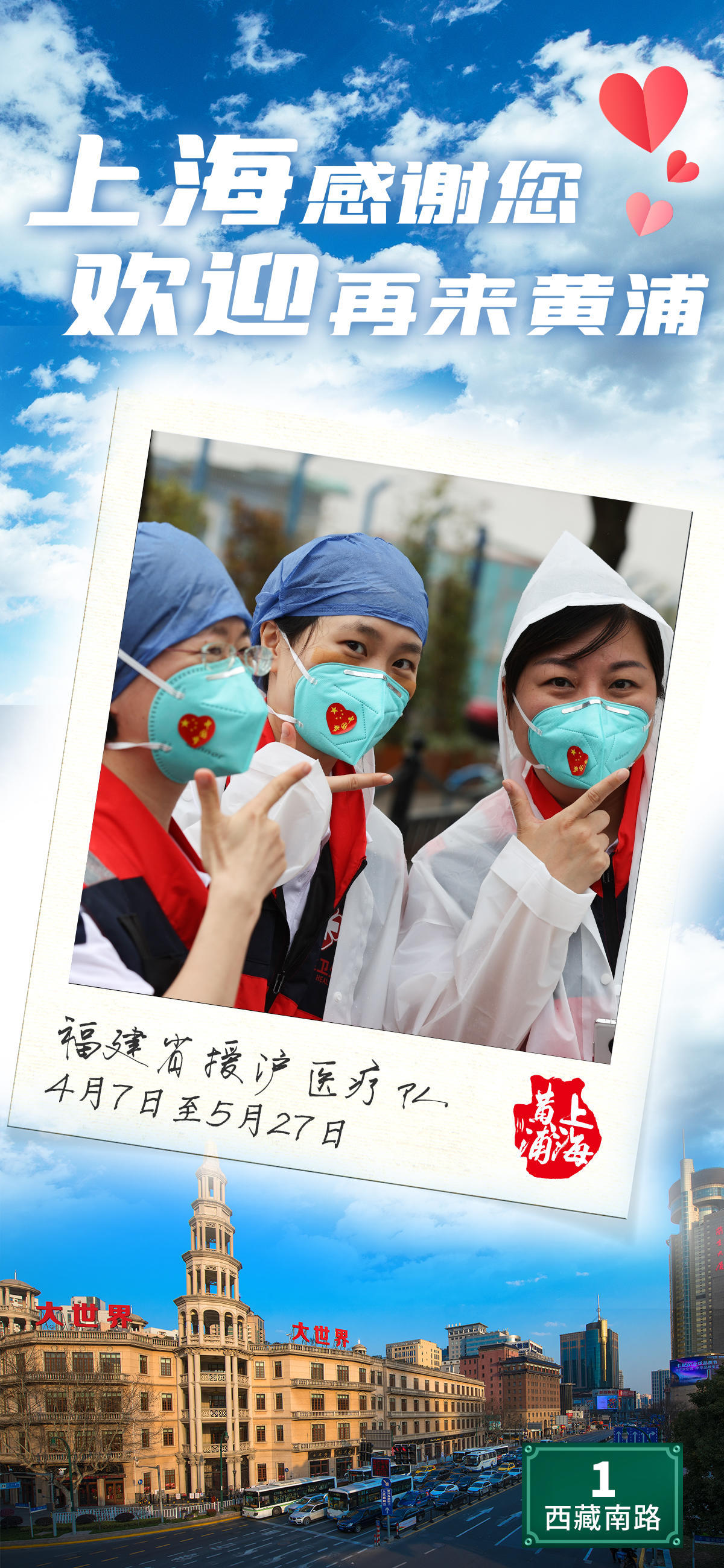 离别是相思的开始,欢迎白衣勇士们再来黄浦。请带上您的亲友,我们一起去外滩、豫园、南京路步行街,一起去一大会址、新天地、上海大世界,一起去感受您拼力保护却无暇体会的这座城市。