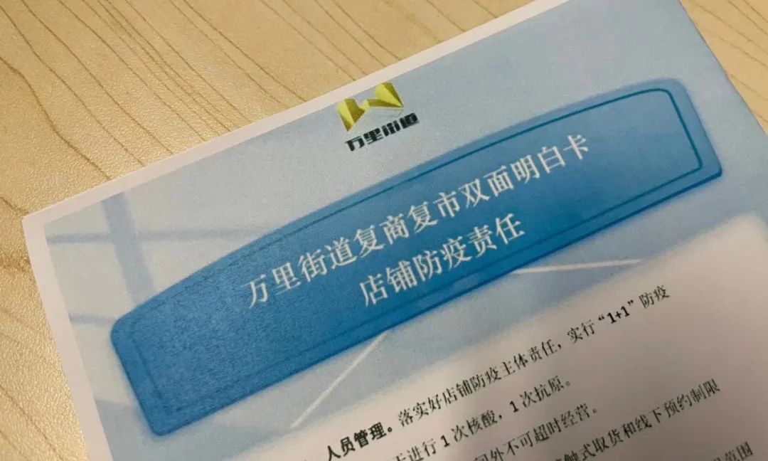 万里街道复商复市明白卡