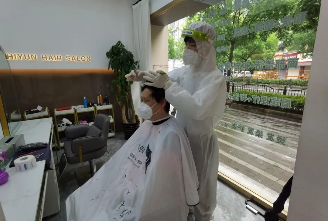得知家门口的理发店恢复营业,附近居民纷纷预约前来洗剪吹
