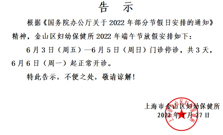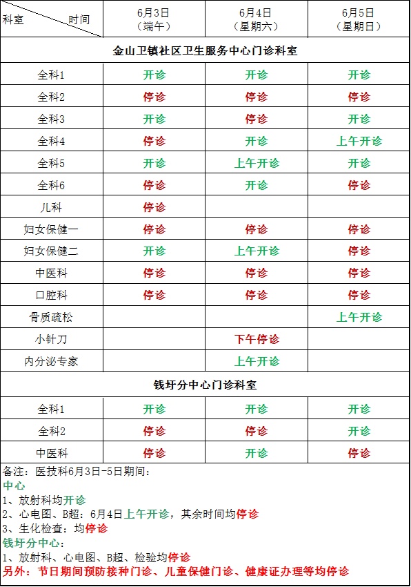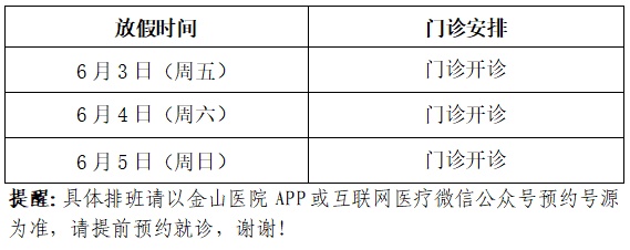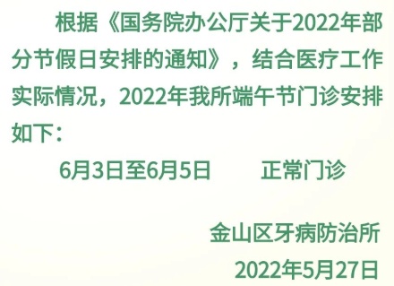 2022年端午假期即将到来,小编整理了节假期间金山区部分医疗机构门诊开设时间给有需要的居民,一起来看看吧~