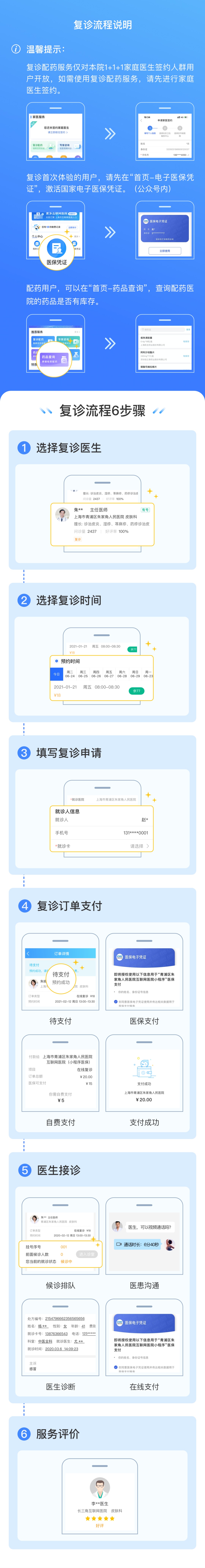复诊配药患者必须为崇明区互联网医的院“1+1+1”家庭医生签约人群,六个月内在上海市、区两级健康档案中有同科室的线下就诊记录。