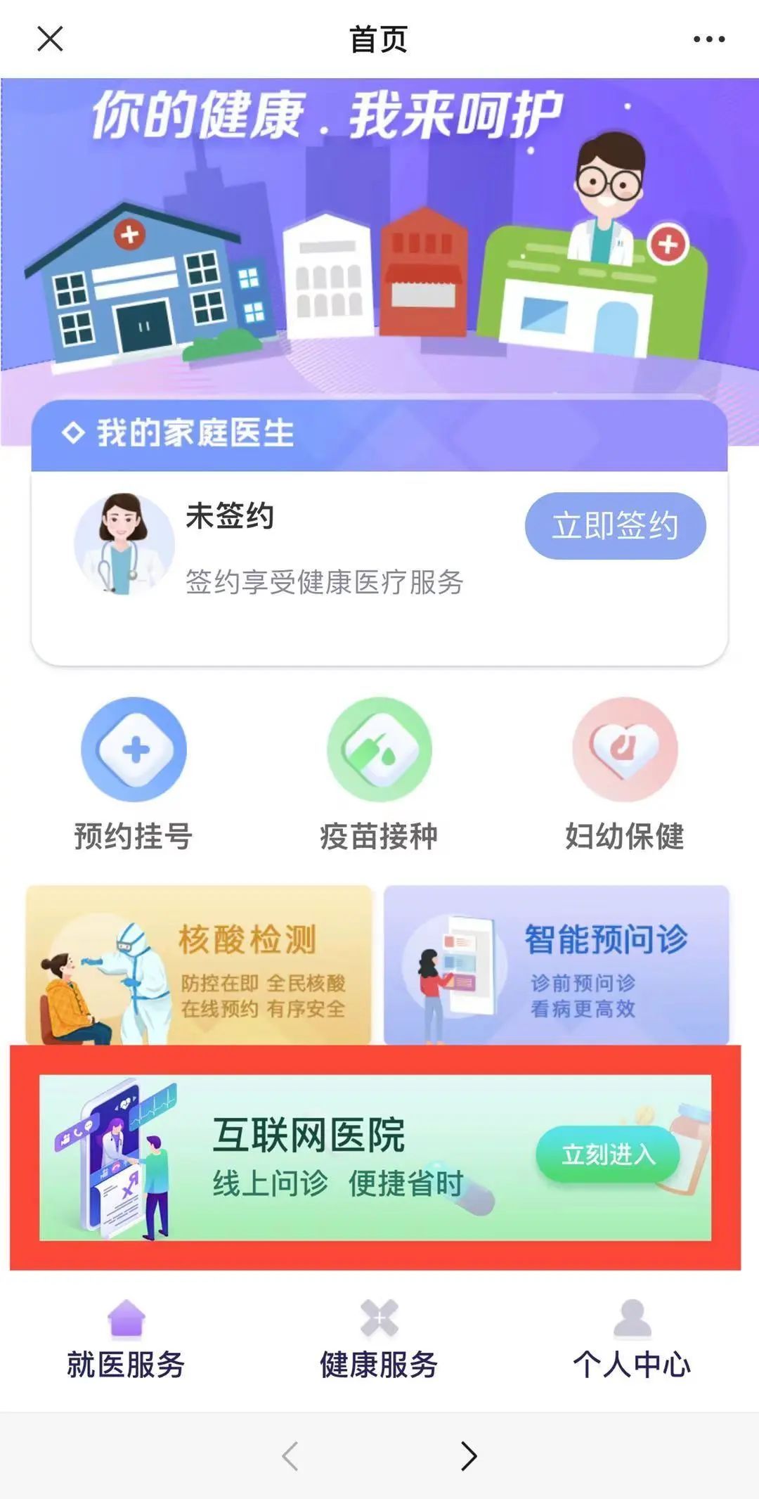 已签约居民可直接登录签约社区开展复诊诊疗,未签约居民可进行线上签约。