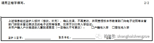2022《上海市小学入学信息登记表》呈现这样的样式: