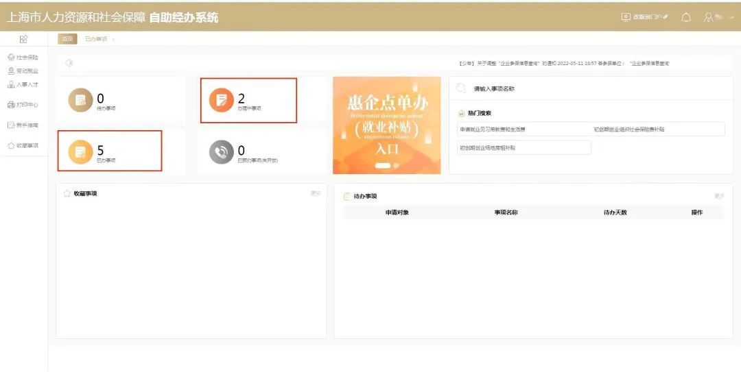 4.办理完成后,单位可自行在人社自助经办系统“已办事项”和“办理中事项”中获取办理情况。