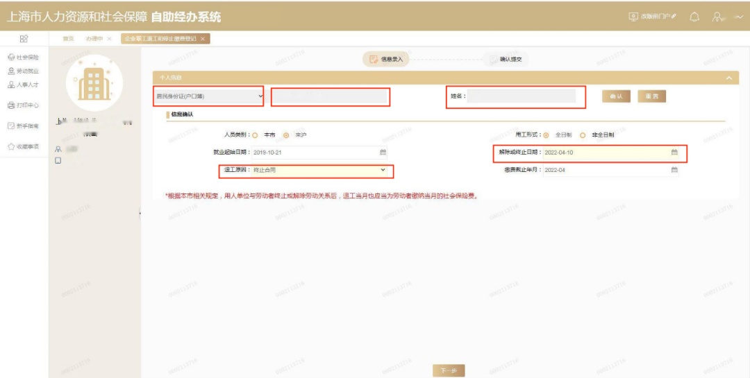 为进一步优化本市营商环境,助力企业恢复市场活力,按照“数字人社”转型升级的工作目标,自2022年6月6日起,在“一网通办”平台、“上海市人力资源和社会保障自助经办系统”同步开通“企业职工退工和停止缴费登记”办事功能,实现线上线下深度融合办理。