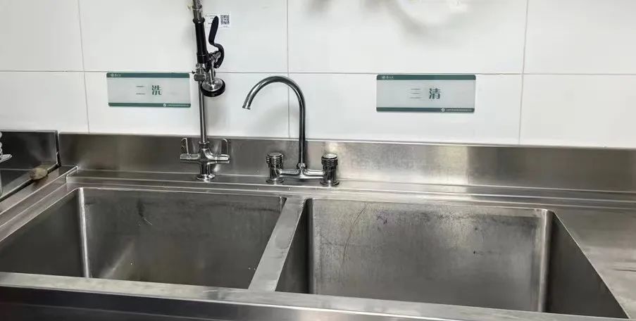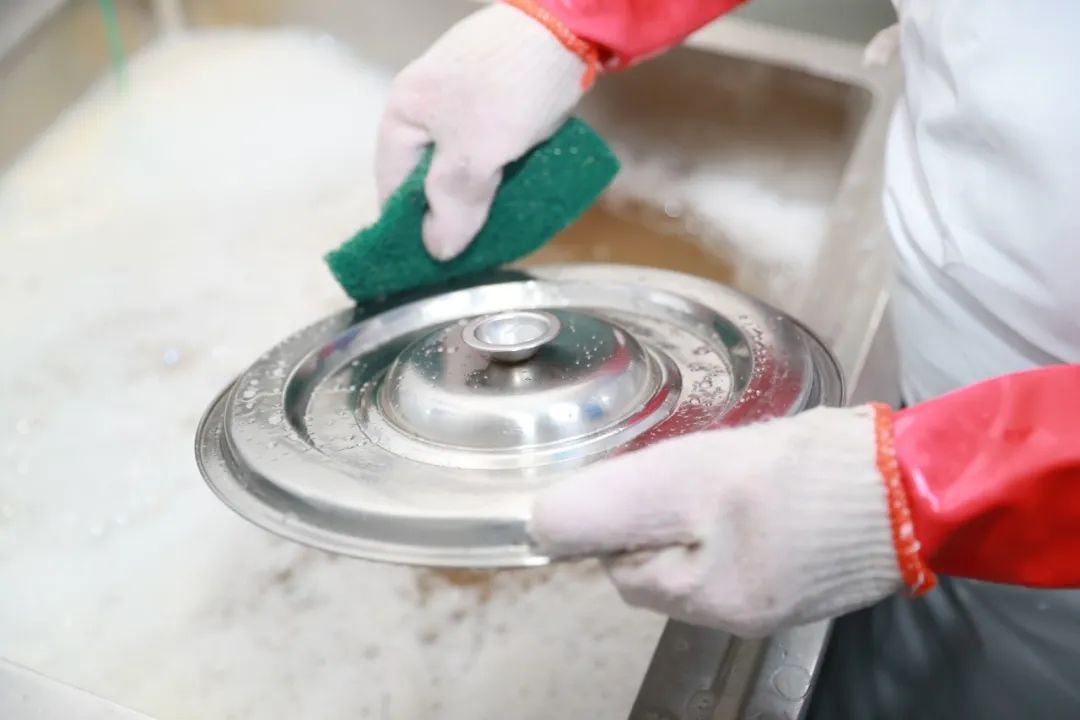 蒸箱蒸煮、洗碗机高温消毒,即使后厨再忙,每餐使用的锅铲、刀具等厨具用品也保证消毒到位。