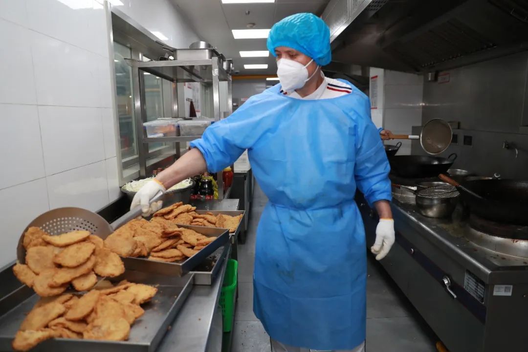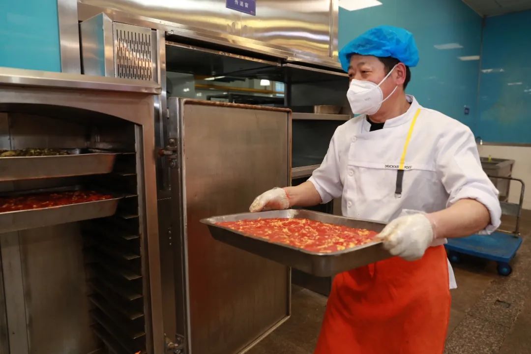 校园封控期时,为了保证师生吃得可口,尽管货源条件有限,食堂仍旧保证至少每餐餐标为1大荤2小荤1素和主食,并尽量做到午餐、晚餐不重复,也会根据师生需求,将辣味减至平时的一半。