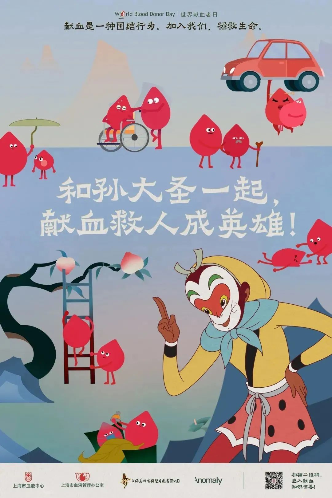 《西游记》里上天入地、无所不能的齐天大圣孙悟空,是不是你从小到大记忆中的“英雄”?上海市血液中心携手上海美术电影制片厂推出献血科普短片《热血悟空》,喊你和“孙大圣”一起,用热血拯救身边的生命!