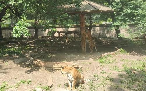 今年1月,上海动物园的饲养员们为狮虎山东山的室外场地安装了新的丰容设备——滑索,让东山的老虎爬柱子去取食。滑索既能够增加老虎的活动量和新鲜感,也能够在周末讲解的时候,给游客带来更好的观赏体验。