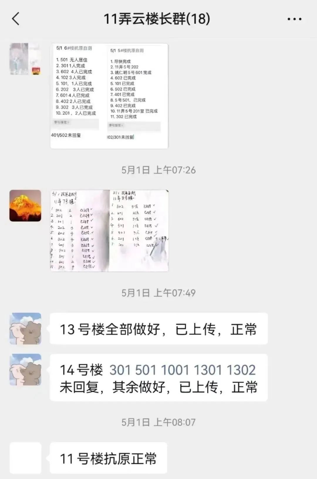 50名“云楼长”之中,有学校教师,有公司白领,有忙碌的二胎宝妈,还有身怀六甲在家养胎的孕妈。“身体不适我可以克服,特殊时期能为小区居民做点事,我和老公都很开心!”党员张霞萍是3个楼道的“云楼长”,她在眼疾发作的情况下仍然坚守岗位,还身兼小区巡查值守、物资发放、协助核酸采样等任务。有时顾不上回复楼道群中的居民提问时,她正在读大学的儿子便主动承担起了“云楼长”的职责。