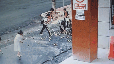 车上的桃子突然散落一地