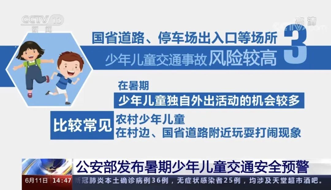 暑期少年儿童交通安全预警提示。
