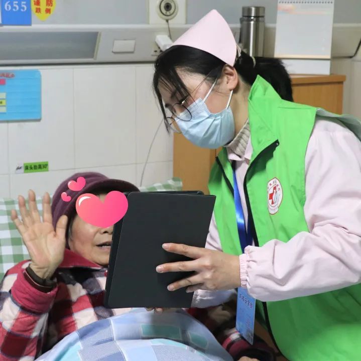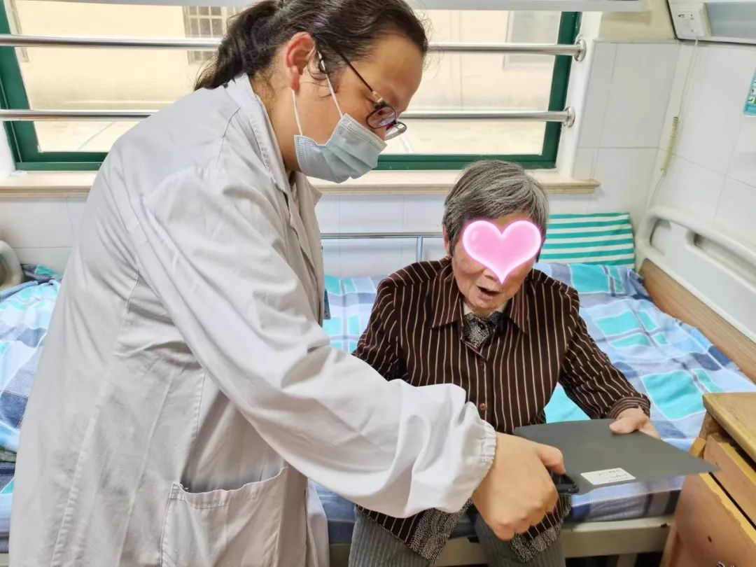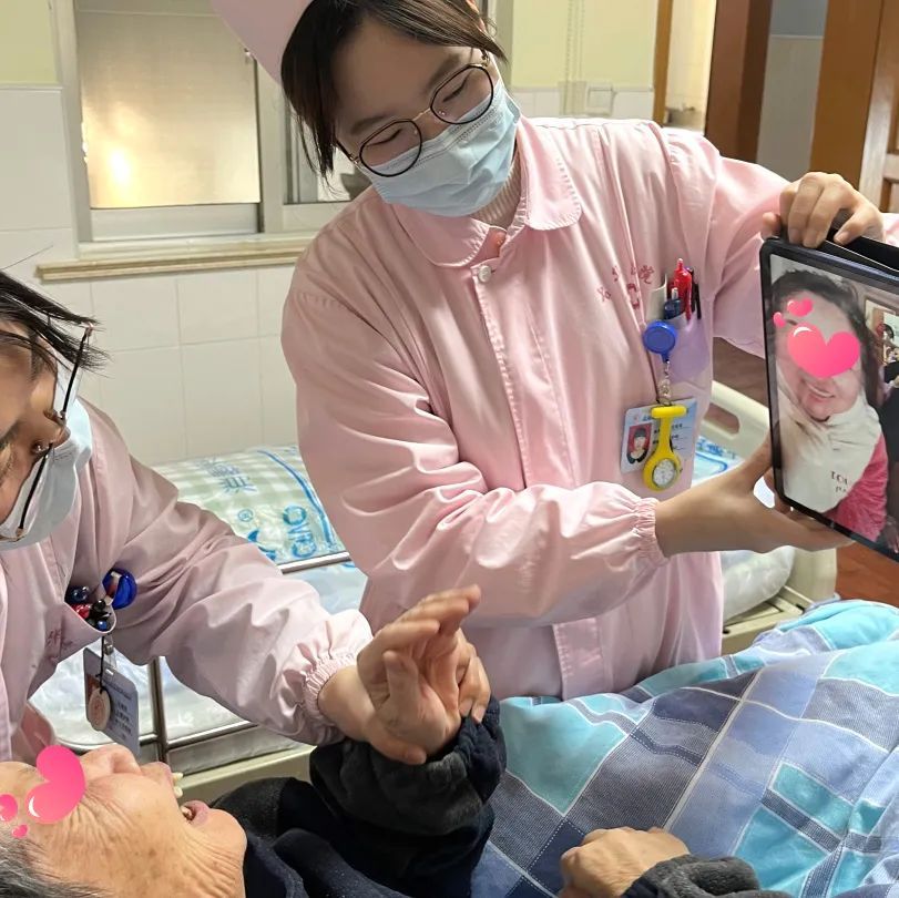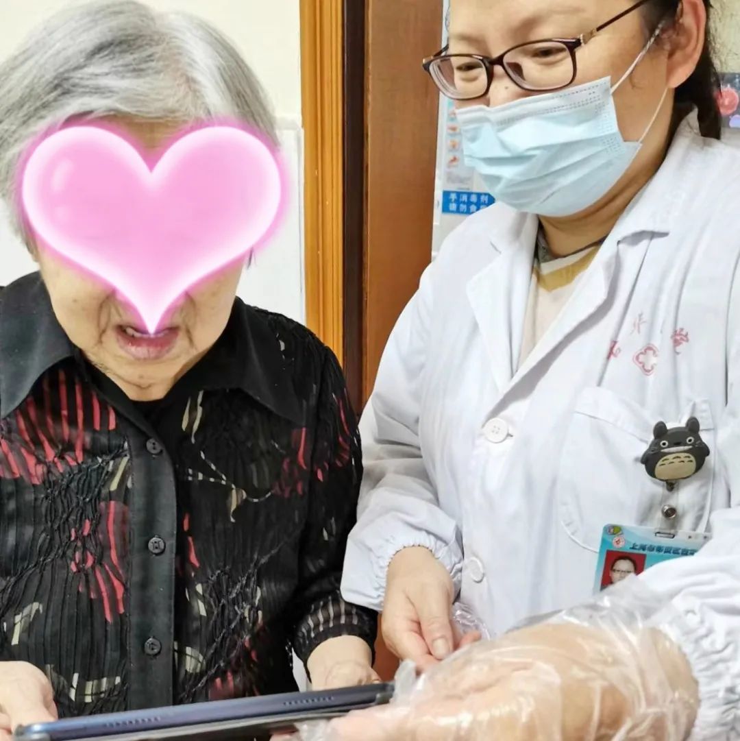 疫情期间pad还发挥了它的大作用。每天一早,护士会用pad扫每一位住院老人、闭环医护人员、护工的核酸码。之后是医生用它和家属交流病情,如609床双手斑丘疹、水疱,拍照咨询三级医院皮肤科医生,老人得了什么病?要用什么药?长期服用华法林的675床手臂上都是出血点,让家属咨询老人曾门诊看过的市级医院专家,是否需要继续服用华法林。下午,要求视频的留言接踵而来。常常是这个刚刚聊完,那个又来了。家属一边和老人唠着家常,一边看着视频中的老人开心地笑了;而老人看见了自己的子女还没有开口说话,笑容已爬上了眉梢。
