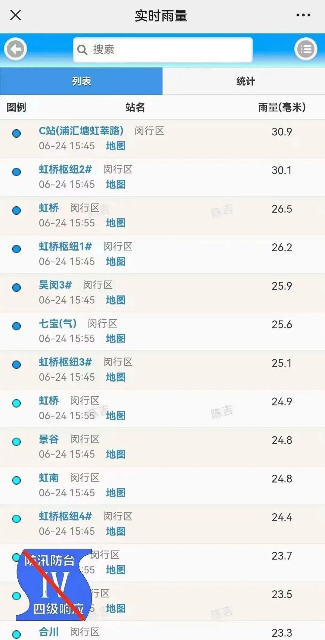 今晨(6月24日)2点起,本市连续发布雷电、大风、暴雨三大预警,市防汛指挥部随即启动全市防汛防台ⅳ级响应行动。由于各项措施落实得当,截至全市防汛防台ⅳ级响应行动解除,闵行未发生积水或险情。