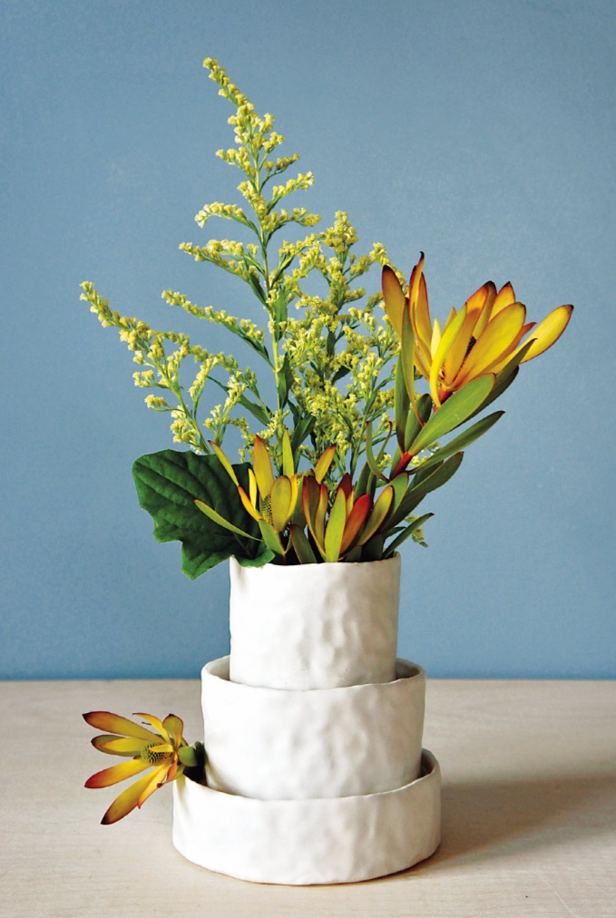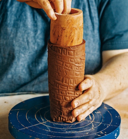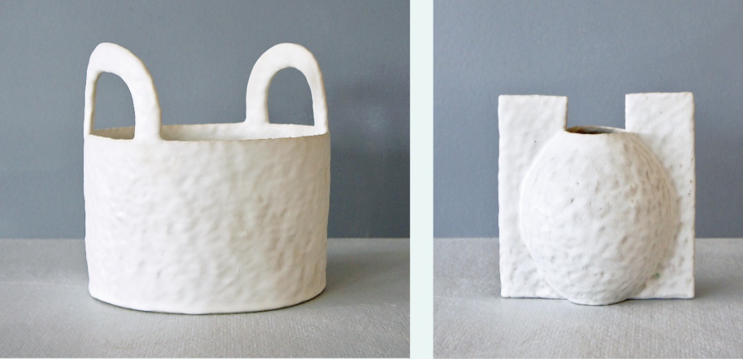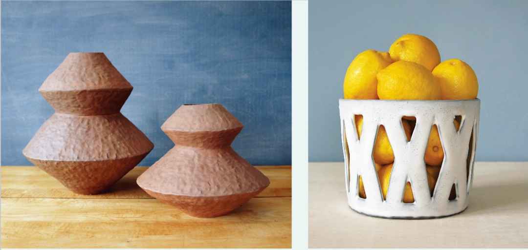 “拉坯的方式抹去了太多我试图保留的触摸痕迹,于是我开始尝试纯手工的制作。其中泥板成型为我提供了很多创作的可能。当我第一次用泥板制作陶罐时,我做得很松散,没有模板,结果罐子做得很古怪。当我开始制作更多的时候,我意识到如果我有模板的话,复制器型和重复制作就会更容易。泥板成型需要注意的一个简单但重要的信息是,在泥板软硬的最佳状态的时候去连接或塑形,才能达到你想要的结果。当然,这点,只能大量地实践然后自己把握。”