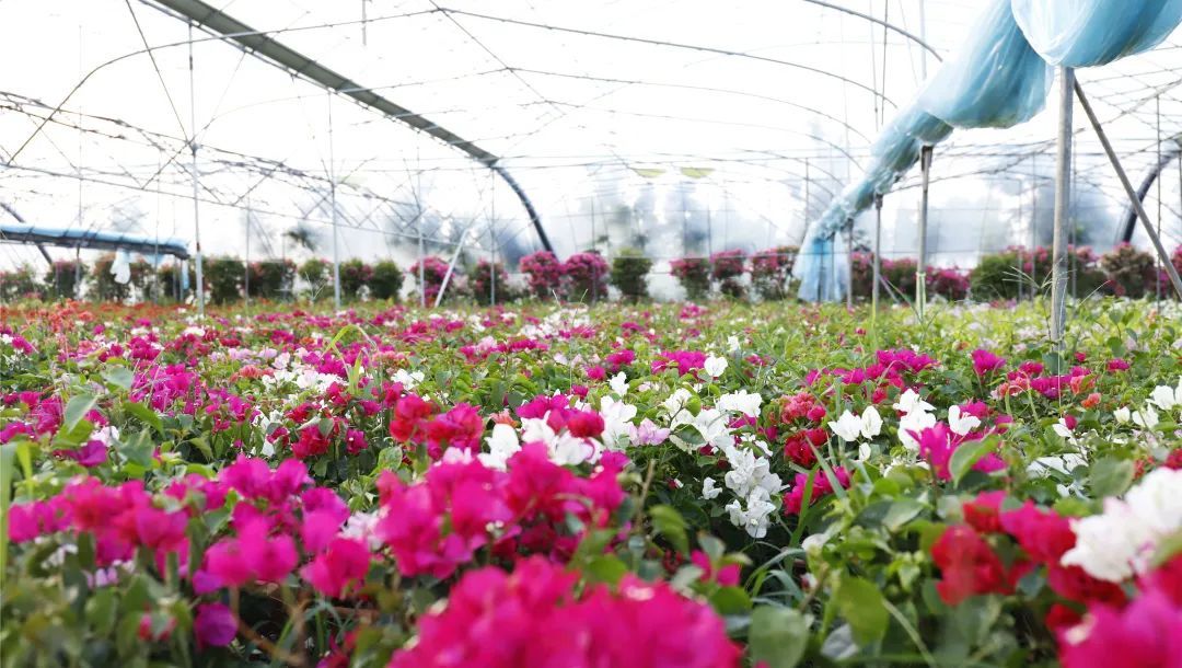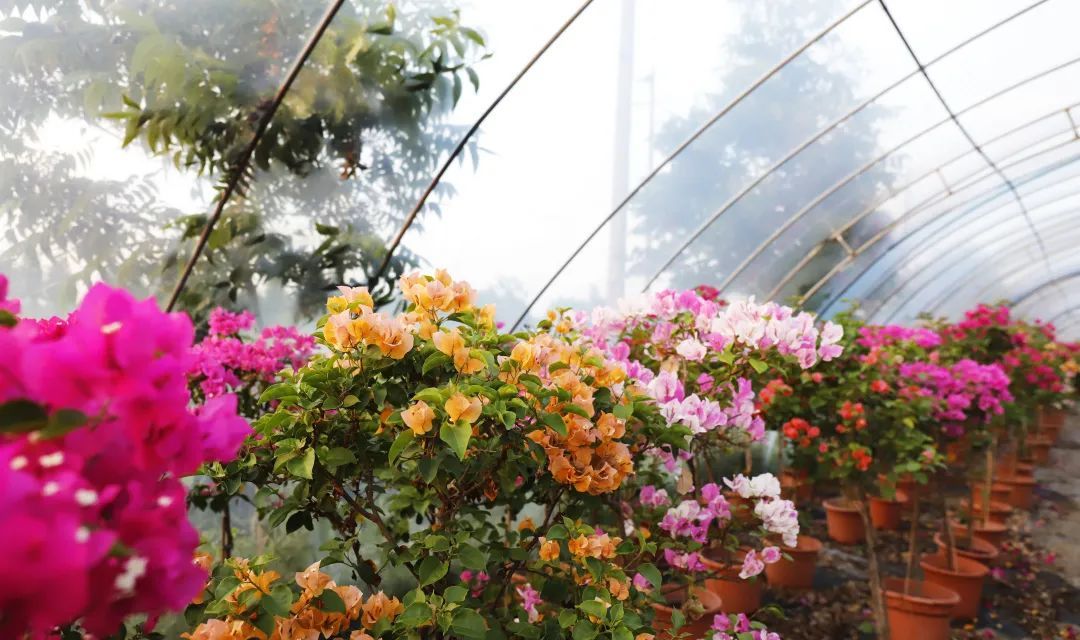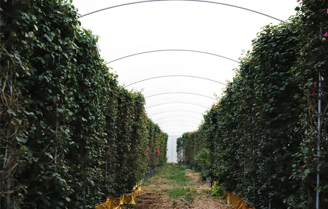 基地负责人王根良介绍:“三角梅喜欢温暖湿润气候,喜欢阳光充足,但不耐寒。十多年来,基地不断创新培育养殖技术,拥有了自己独有的三角梅养殖‘配方’,基地的三角梅一年四季都能开花,还可以根据客户需求,预制开花期,艺术造型等。”