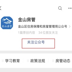 微信搜索“金山房管”,或打开“扫一扫”,扫描下图二维码,点击“关注公众号”即可关注。