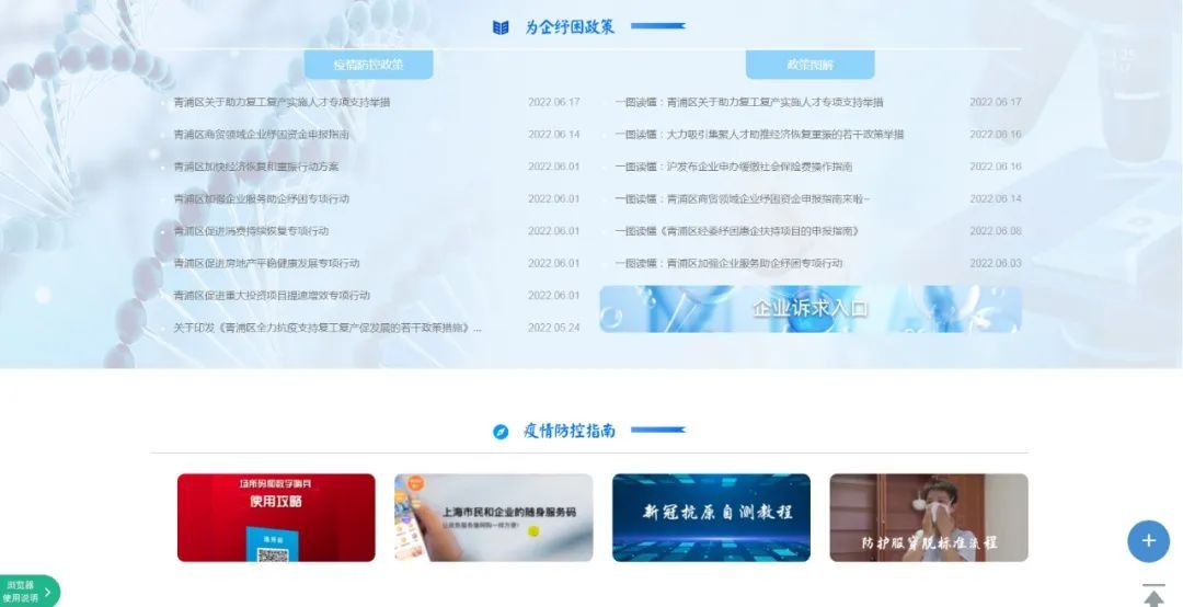 为企纾困助复工。按照要求,及时上线为企纾困政策专栏。及时发布我区助企复工的相关政策和服务措施,从而方便企业及时了解政策,截止目前共有11条区级政策,24条政策图解。同时,还开通复工复产期间企业困难诉求渠道,有效帮助企业解答在复工复产过程中碰到的困难和问题,截止目前共答复问题7条。
