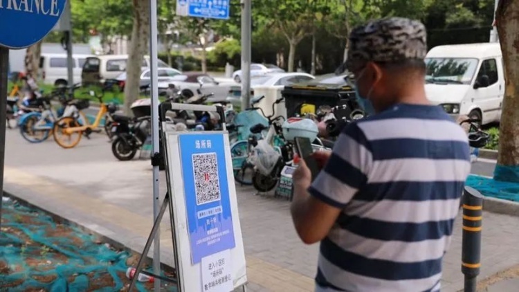 常态化疫情防控下,小区持续绷紧防线。在每一个楼栋门口都张贴了场所码。快递进入小区,需要经过层层消杀,并采用无接触配送。