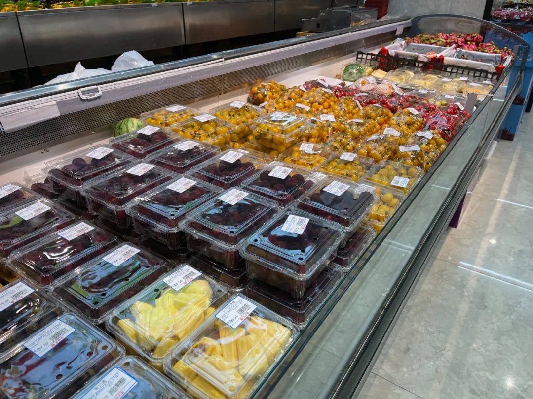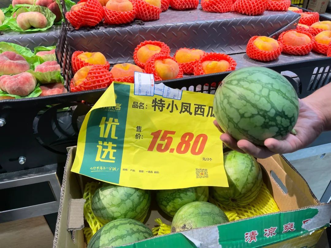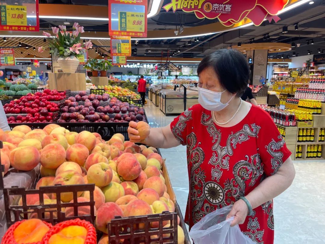 随后,记者又来到“京优客”超市,发现超市里水果摊位的顾客络绎不绝。据超市员工介绍:“入夏以来,水果的品类增加了不少,来买水果的顾客也多了不少,桃子和西瓜是比较受欢迎的。”在价格方面,记者发现超市里的部分水果比临街水果店价格略微高一些,不过包装更精致,超市每日还有特价促销,购买相关品种水果也非常实惠。