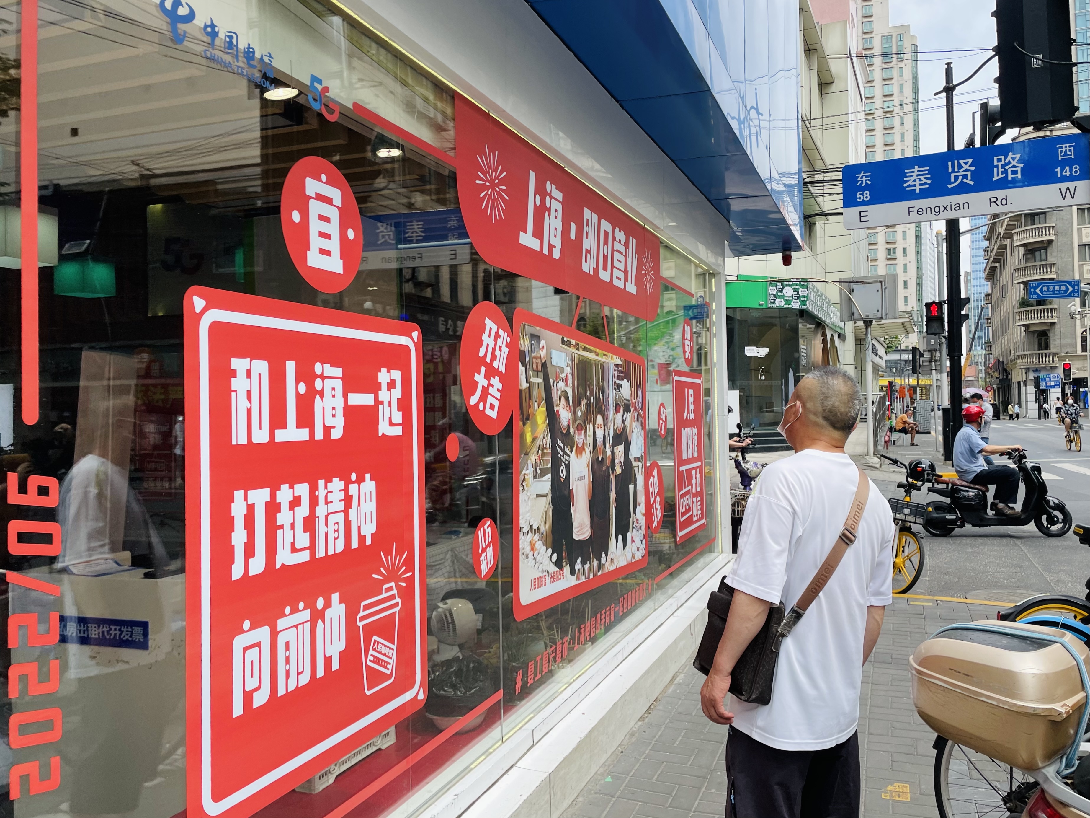 据介绍,该活动以“上海,即日营业”主题,通过营业厅的地理优势和橱窗优势为品牌、商家进行免费宣传推广、引流,助力复苏。橱窗上的巨幅海报辐射和连接了众多中小社区品牌,所有品牌都在上海电信营业厅的橱窗上向市民宣告“回归”。