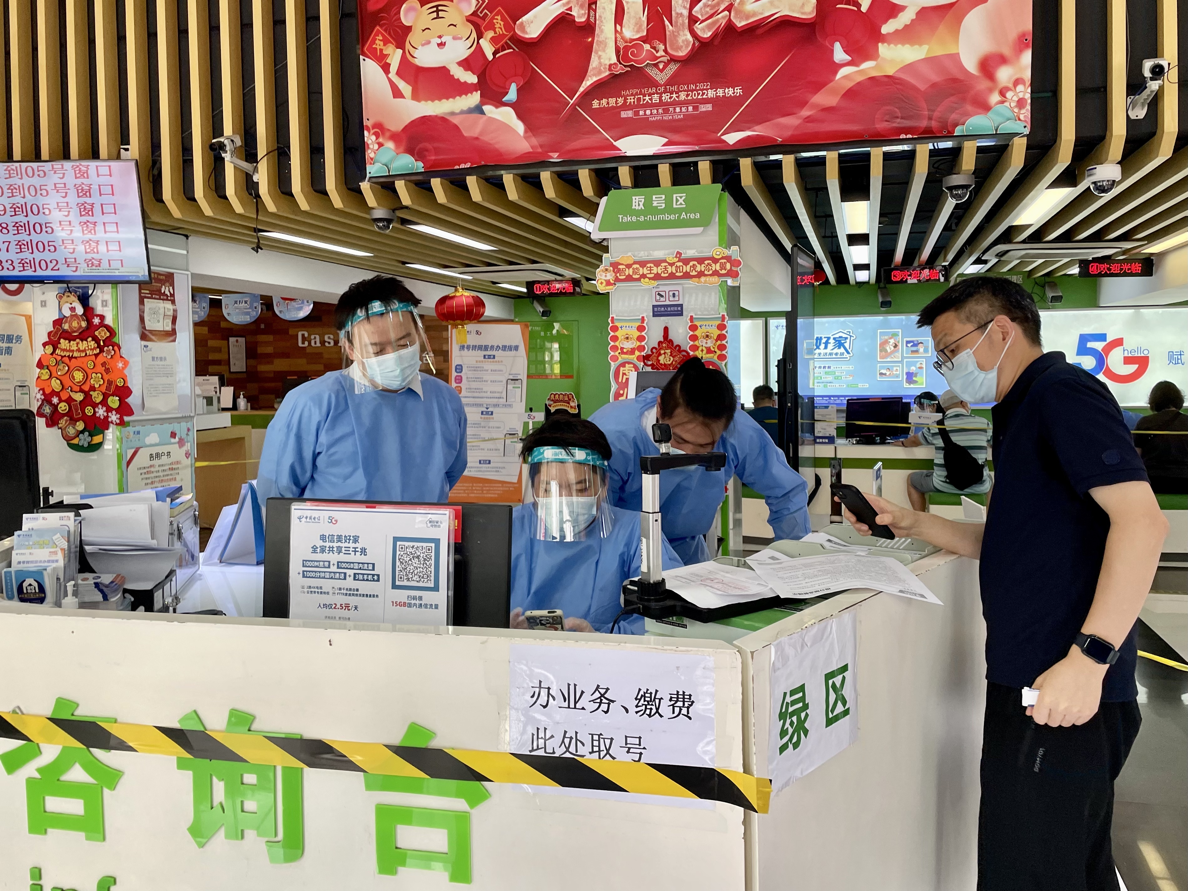 据上海电信泰兴路营业厅负责人介绍,目前,营业厅客流量已基本恢复至疫情前水平。为减少高温天气下客户的排队等候时间,工作人员会有序引导客户至厅内错位落座等候;厅内也按照防疫要求划分了不同区域,设置出入动线,避免人群过度聚集。“我们多安排了人手,对于老年客户,我们也会优先专人引导帮助办理业务,加快业务办理速度。”