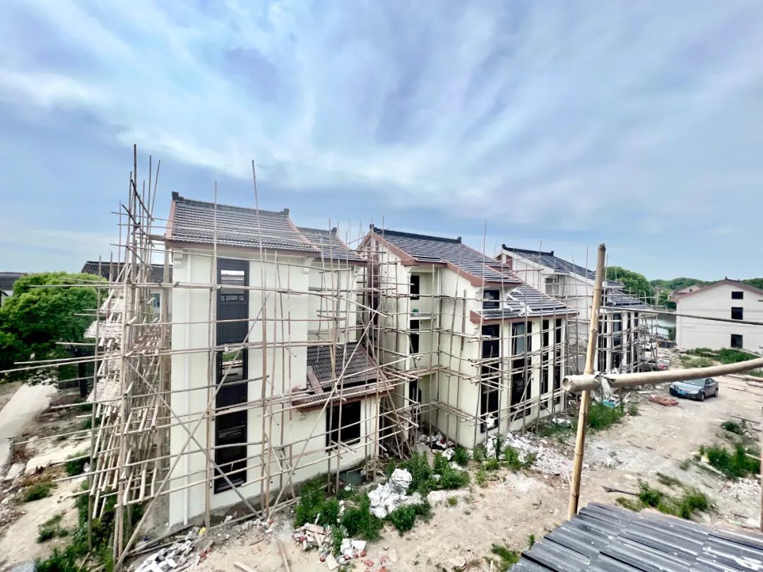 星明村农民住房“组团式翻建”项目于去年3月启动施工。北巷、西巷、南巷、东巷和仓场5个村民组的145户农民住房重新翻建。其中,72户农房已完成结构封顶,目前正在进行外墙施工粉刷,将于年底完工。
