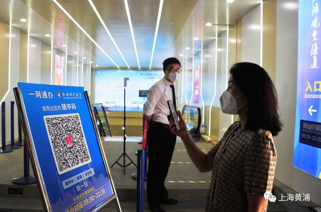 7月4日上午,外滩观光隧道重新迎客,游客通过现场扫描“数字哨兵”或“场所码”通过核验后就能进入隧道。