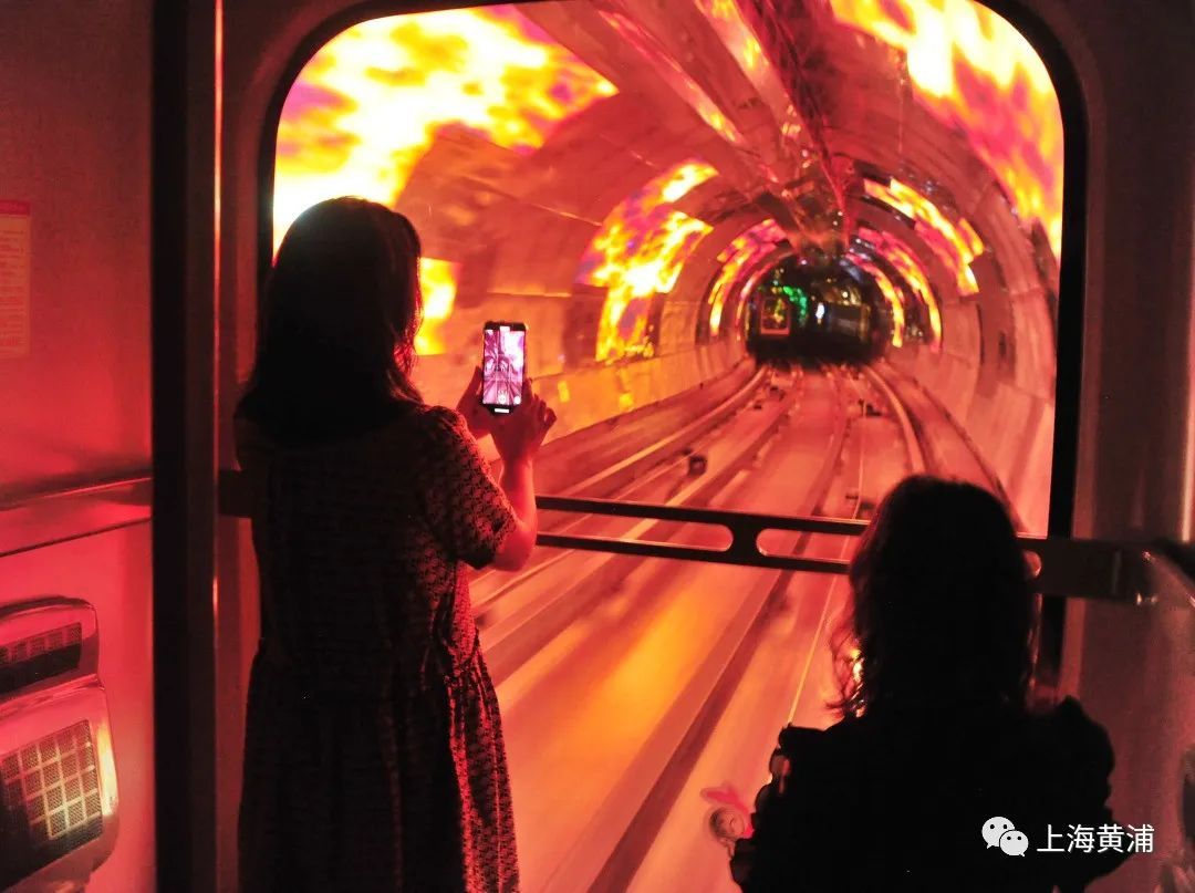 一大早,就有市民游客前来打卡,游客重登法国的sk游览车,一路穿越熟悉的时光隧道,沿途欣赏绚丽多彩、璀璨梦境般的光影。