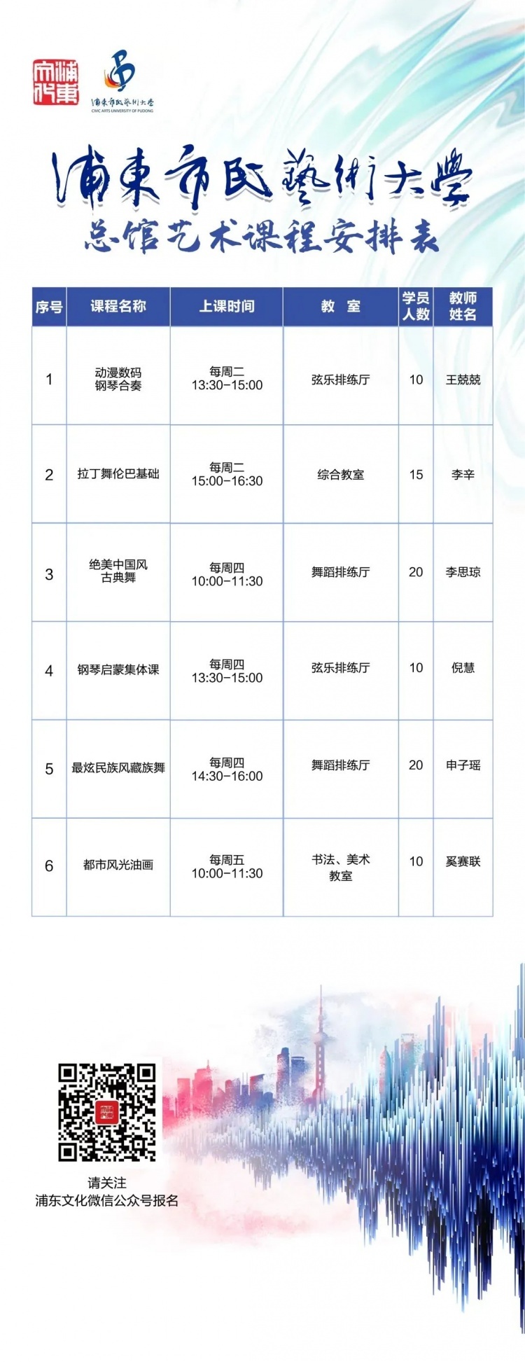 另有好消息,浦东群艺馆的“小小传承人”暑期公益培训、浦东市民艺术大学培训也开始报名啦!