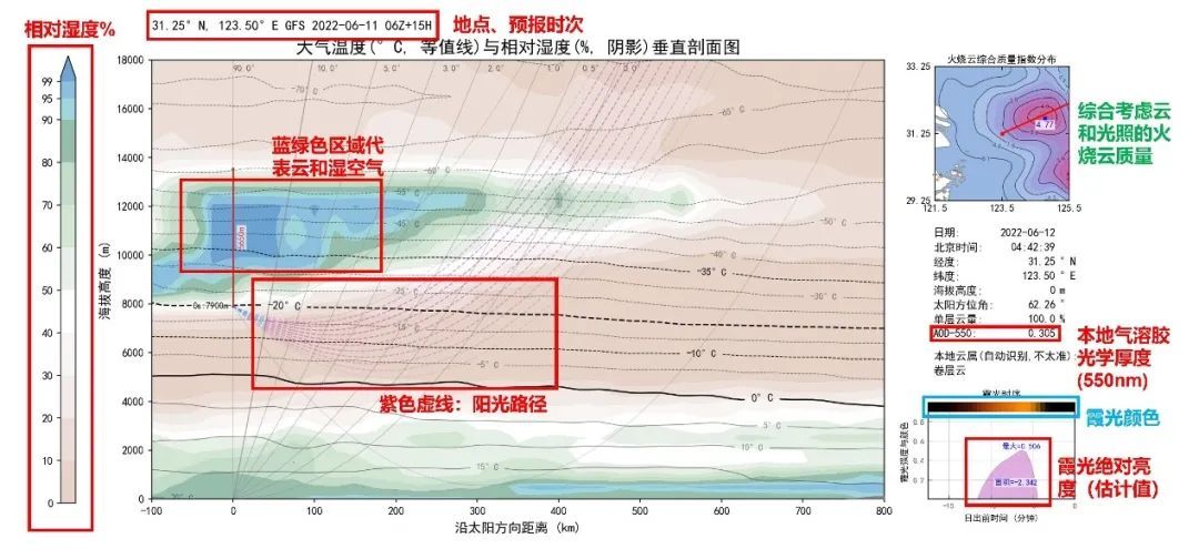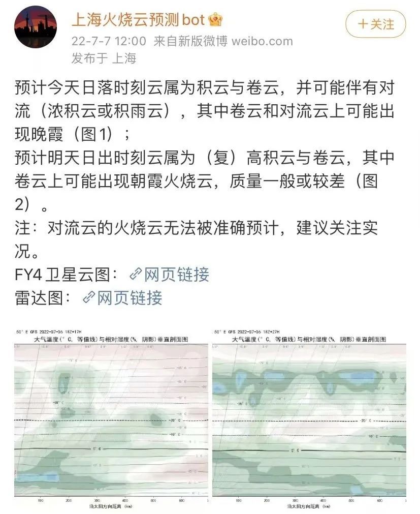 谈起兴趣,钱昆是一位忠实的气象爱好者,平时喜欢摄影和观察自然风景,经常在摄影群里与群友分享观看火烧云的经验。去年11月,钱昆利用自己的专业知识尝试做预测,看到了一场绝美的朝霞,这次意料之外的惊喜让钱昆萌生了开发一款预测程序的想法。将所学的专业知识与兴趣爱好相结合,钱昆将自己的想法转变为现实,火烧云预测程序应运而生。他将自己的预测结果发布在微博上,没想到引来了一大波关注。