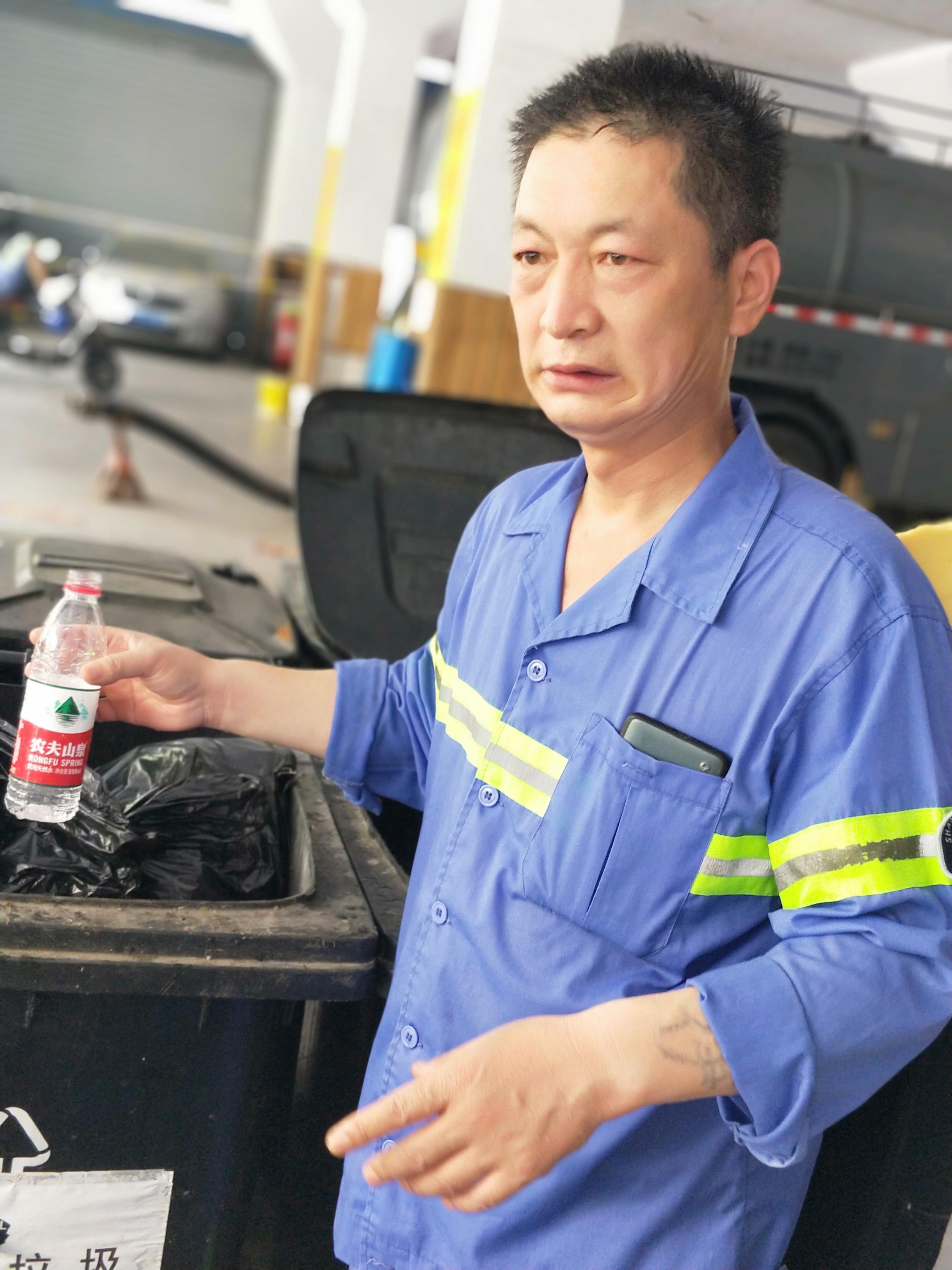 “辛苦了!为了居民们的生活更洁净,我们辛苦一点值得!”中午时分,脱下防护服,完成消杀后,回到公司驻地。看到全身湿透的伊兴见进来,机动班班长陈文杰马上递给他一瓶水,并鼓励他为抗疫继续努力。“这是我们的本职工作。面对反复的疫情,我们能做到的就是收集作业再仔细一点,消杀工作做得更全面一些,为居民、为自己的安全保驾护航。”中午休息片刻,下午,还有一些居民区等着收运小队成员们继续收集、清运。“疫情不退,我们不退!”班长陈文杰为队员们天天打气鼓劲。