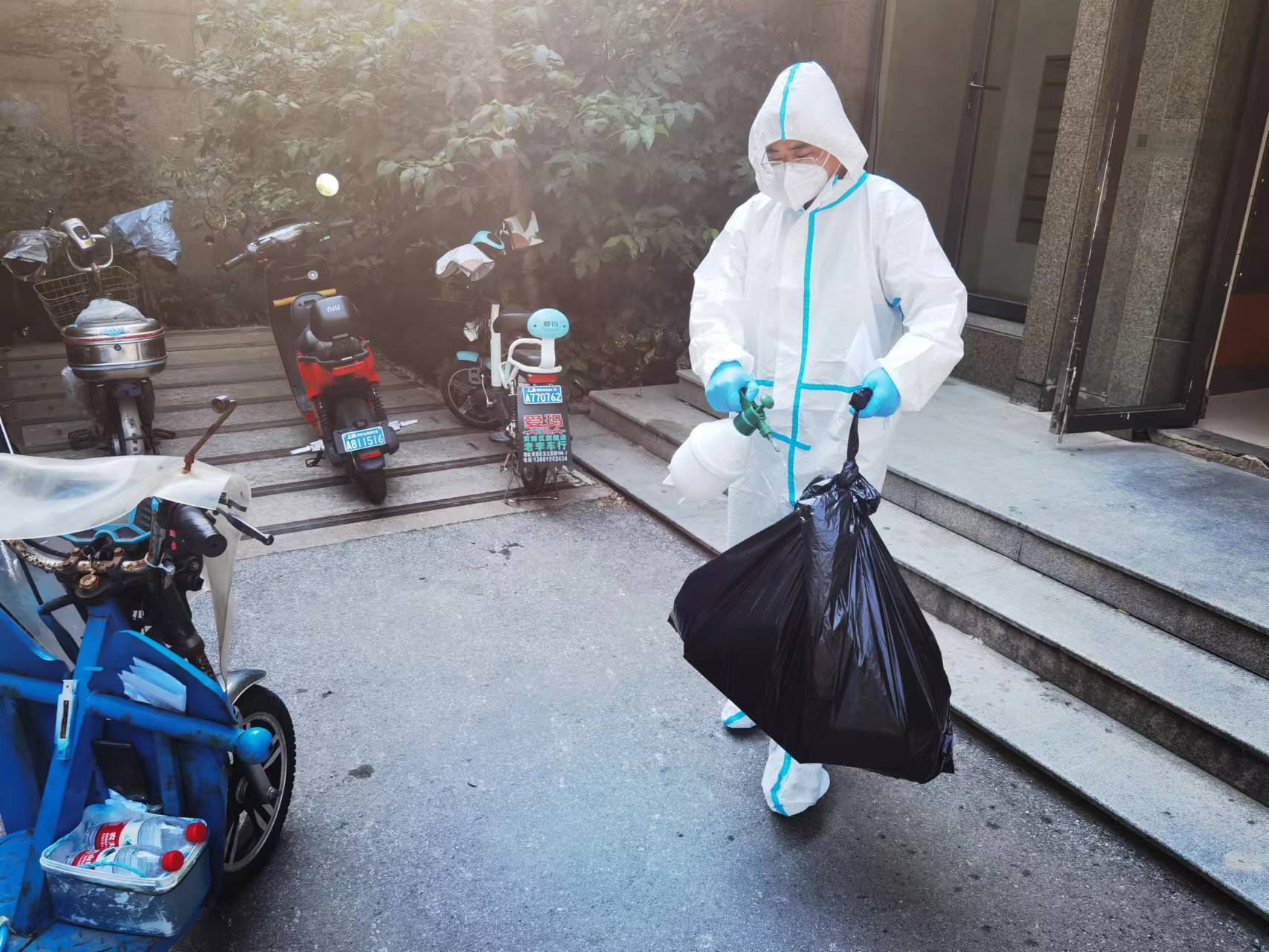 7月上旬以来,随着上海多地陆续升级管控,被列为中、高风险地区。欣园公司核心作业辖区老西门街道以及豫园街道也接连出现该情况。疫情就是命令,防控就是责任,机动班收运小队又化身“大白”,进入到危险第一线。