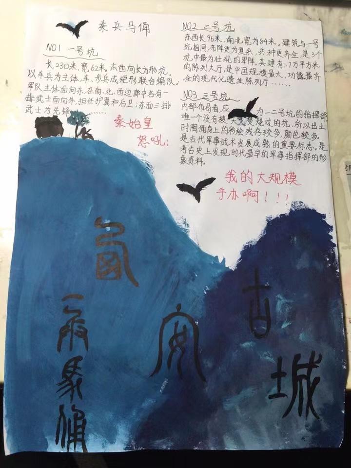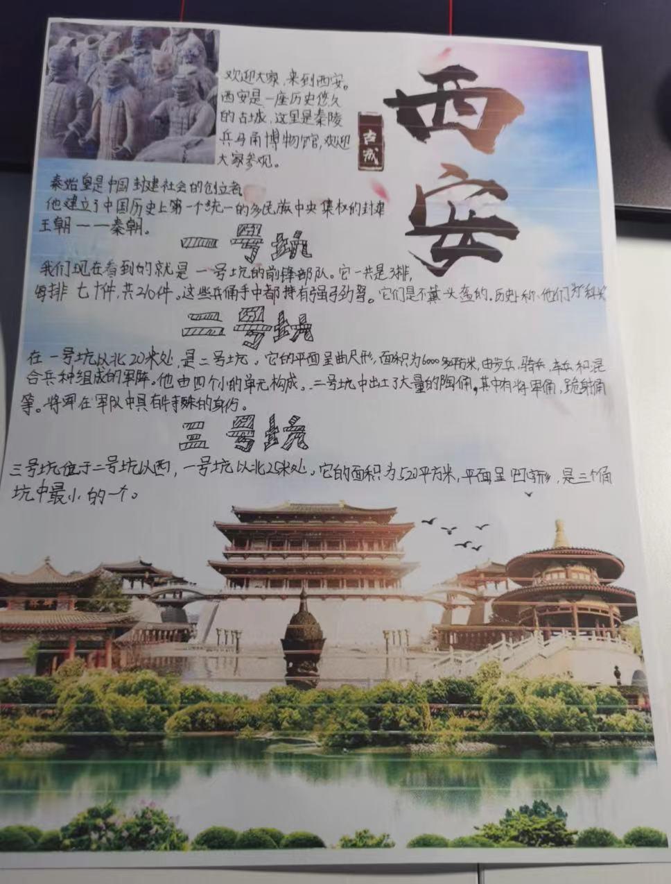 七年级的同学们“走进”了西安秦始皇帝陵博物馆,近距离感受“世界第八大奇迹”——兵马俑的风采。参观之后,他们变身小小讲解员,仔细查阅资料,结合参观感受,把最有感触的部分撰写成讲解词,并录制音频,向参观者进行介绍。
