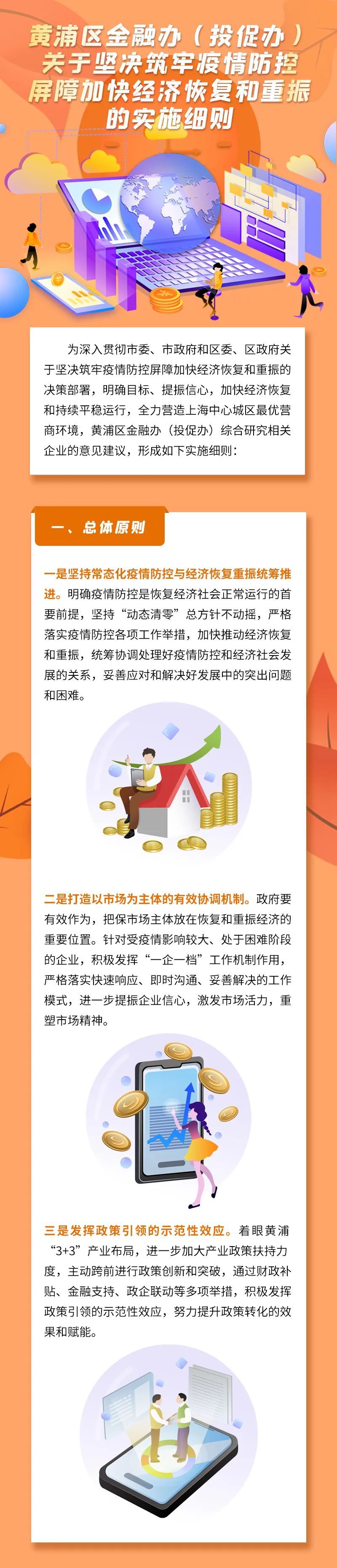 近日,黄浦区金融办(投促办)制定关于坚决筑牢疫情防控屏障加快经济恢复和重振的实施细则,包括八方面24条具体举措,持续巩固防疫成果有序推进复工复产,详见↓