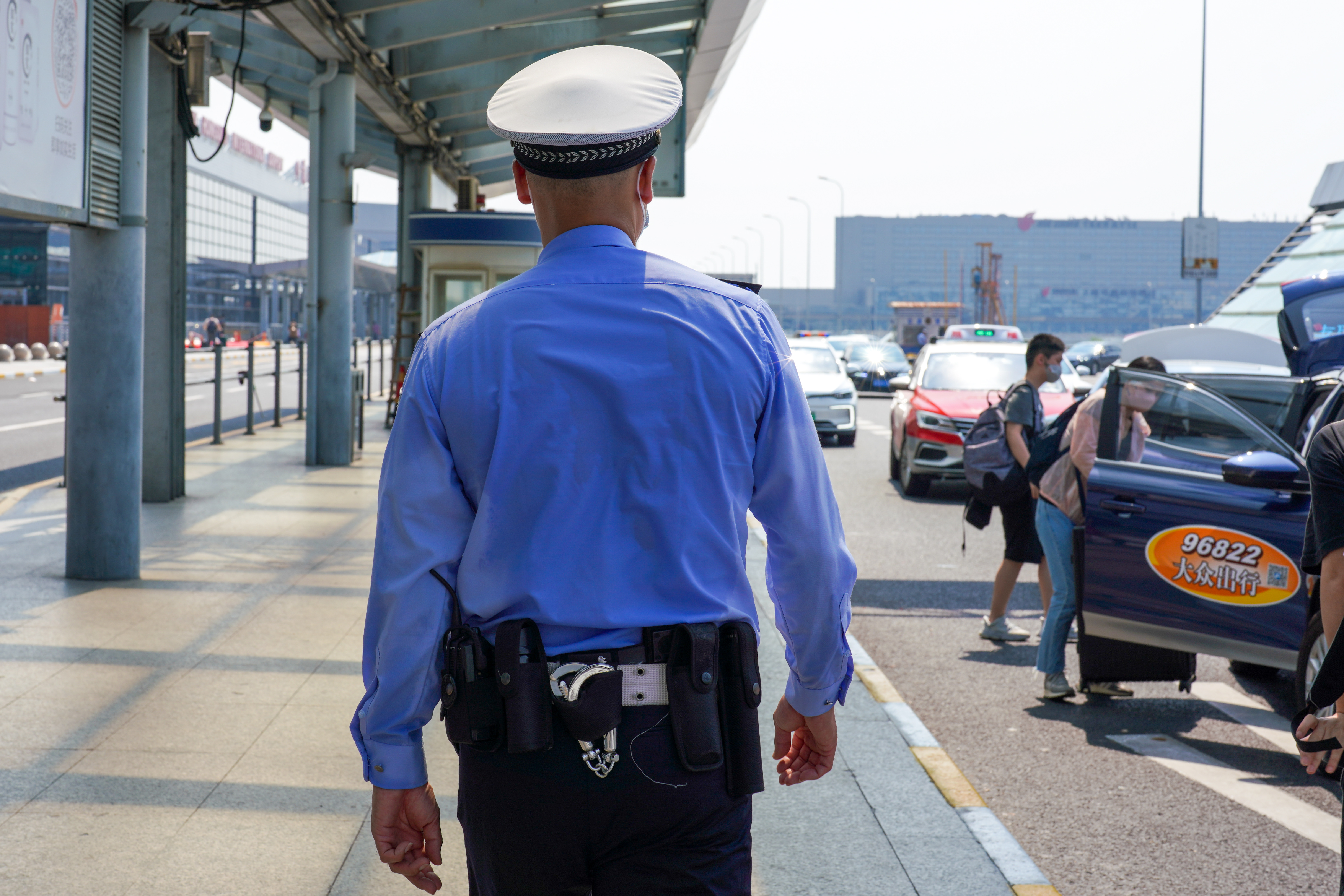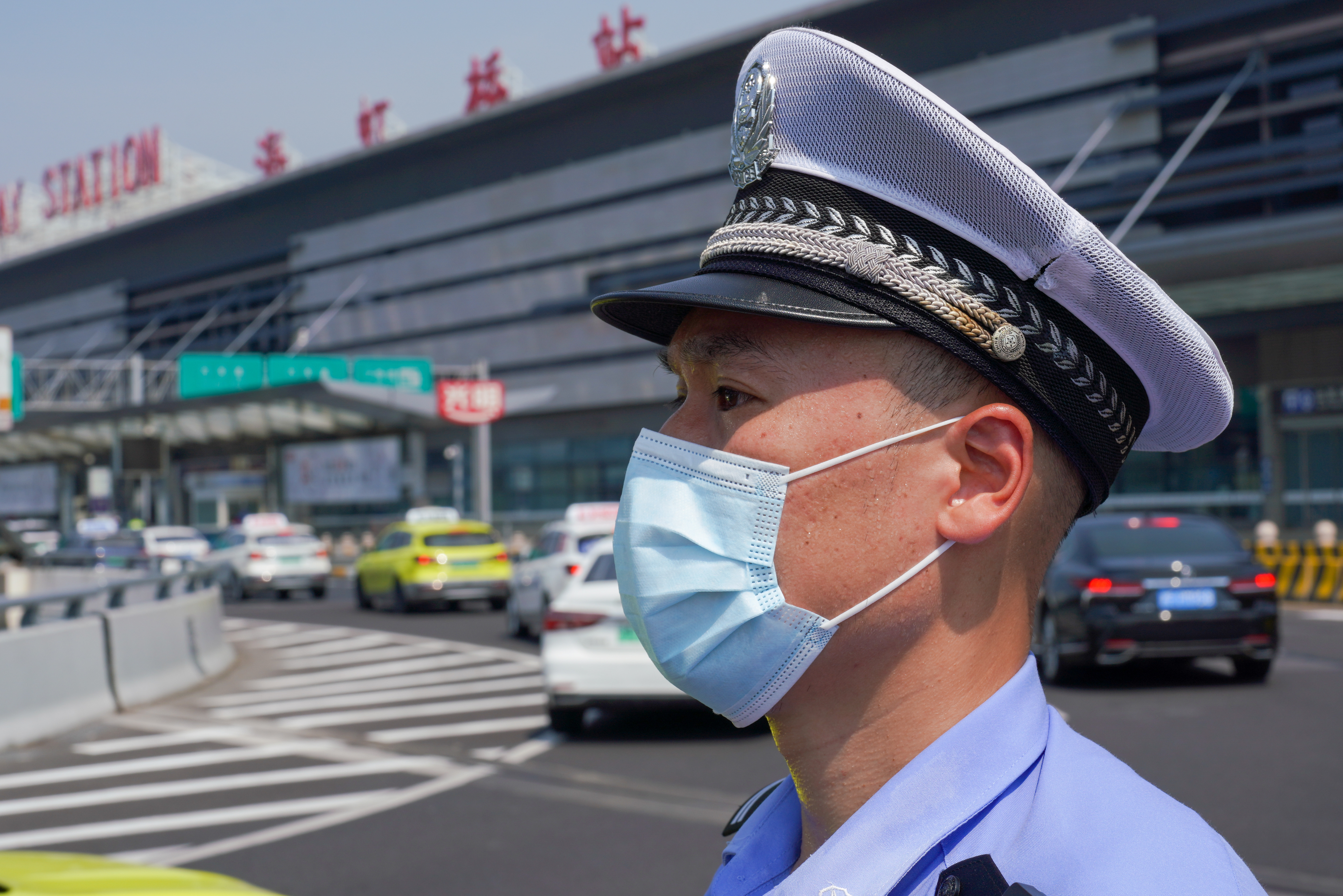 “保守估计每天有一万辆车通过此处,大约有两万左右人次吧。因为这根横道线正对着虹桥站高铁的进站口,为了保障旅客的安全通行,我们交警在现场进行指挥疏导。虽然天气很热,酷暑难耐,交警队还是依然坚守在自己的岗位上,目的是为了保证旅客的安全出行。”蔡捷斌说。