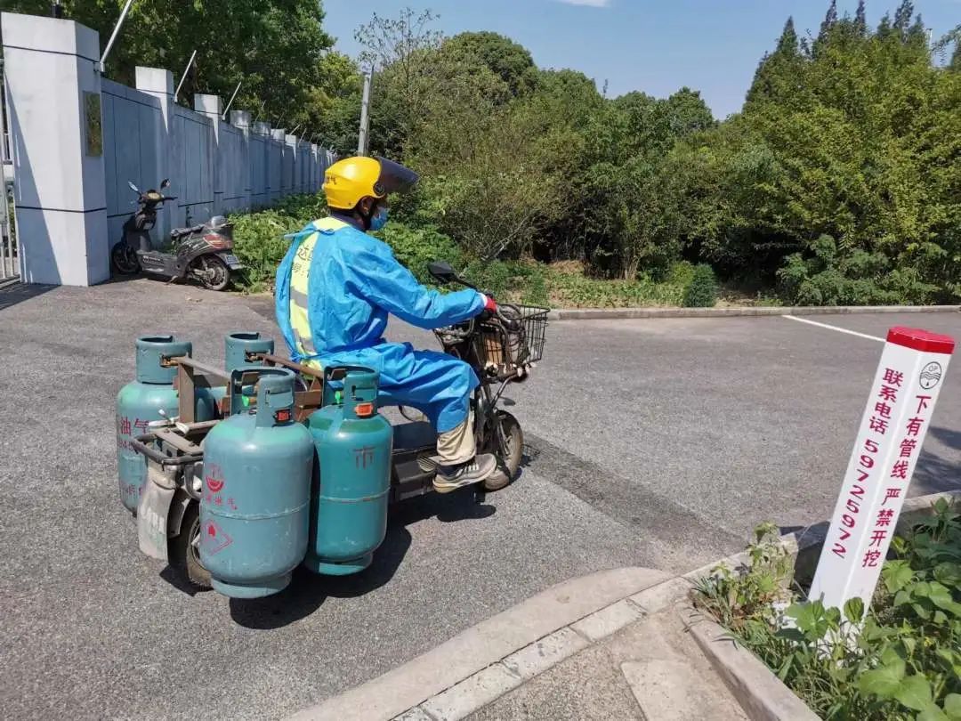 身穿工作服,骑上电动车,顶着明晃晃的太阳,送气工又踏上了送气的路途。虽然天然气已经走入千家万户,但在一些老旧小区、城中村,包括一些小餐饮门店,瓶装液化气依然有不少用户。将气瓶送到用户家中后,送气工还需要帮用户安装好,更重要的是要做一次入户安检,确保使用安全。据介绍,液化气储配站每日充装液化气近15吨,配送至用户处800余瓶。