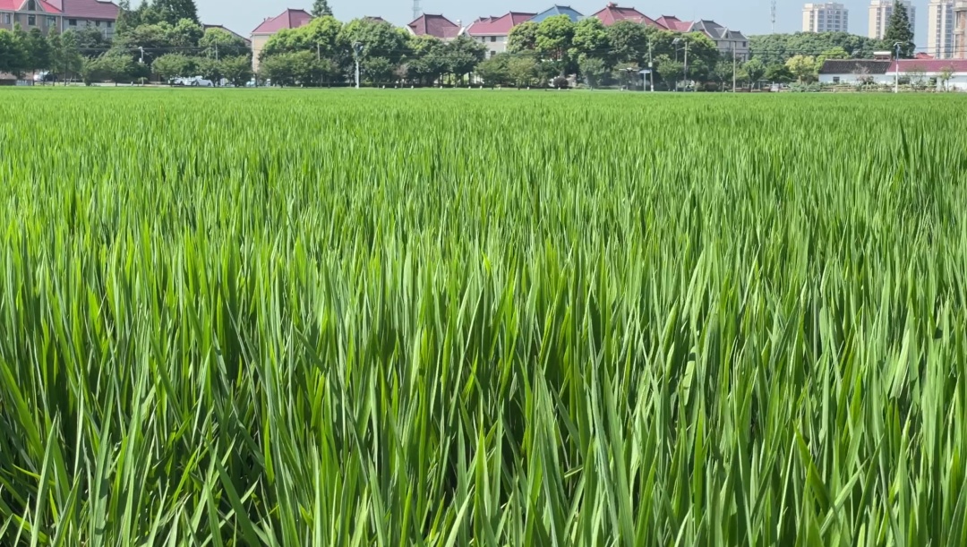 这两天,位于宝山区罗泾镇花红村的千亩良田进入了茁壮旺盛的成长期,成片绿油油的稻田配上湛蓝的天空,构成一幅美丽乡村的稻田风光。