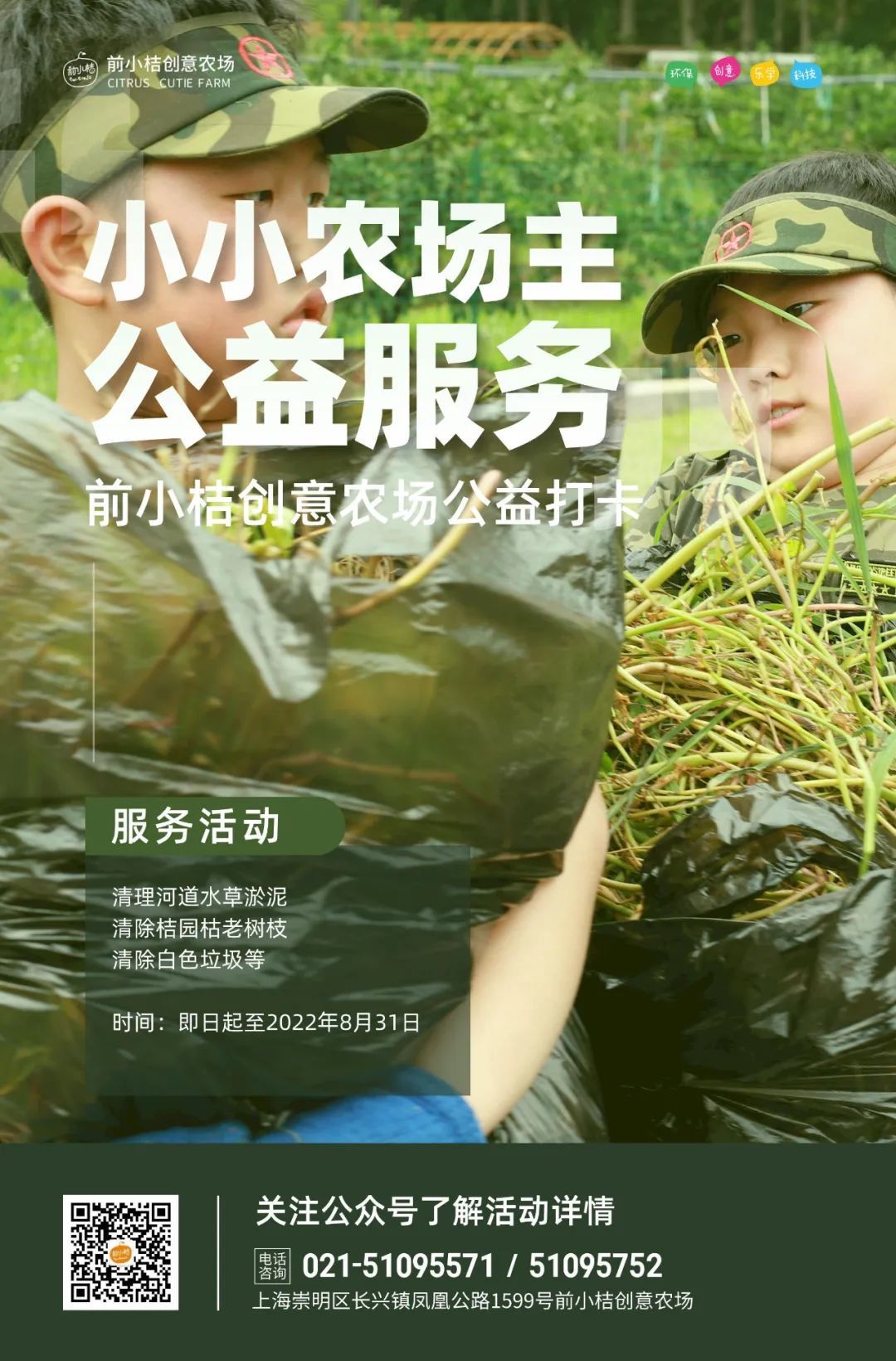 作为上海登记注册的公益服务基地,即日起至8月31日,在前小桔创意农场可打卡“小小农场主”志愿服务。