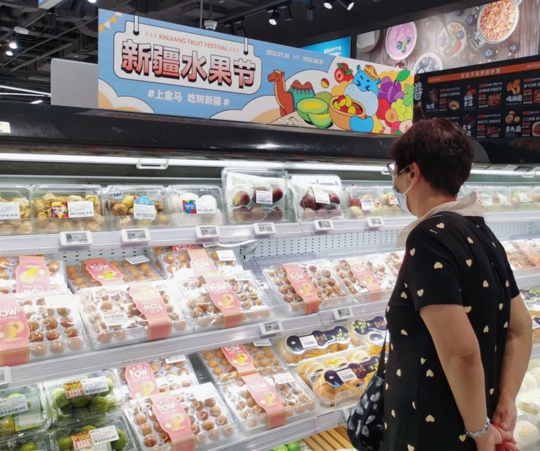 作为已多次参与上海对口援疆工作的本地消费品牌,盒马积极参与打造援疆“数商兴农”新模式。从第一届水果节开始,盒马就设立了驻疆采购办事处,采购团队常年驻扎新疆。同时,盒马在当地建设“盒马村”,采用订单农业的方式,成规模实施标准化种植,让水果产地在品质和数量上保持稳定供应。